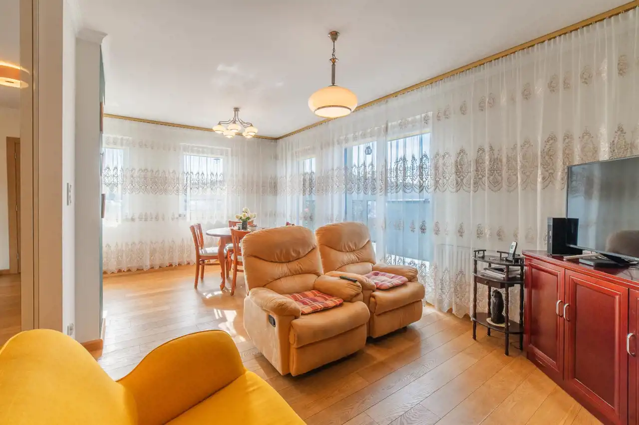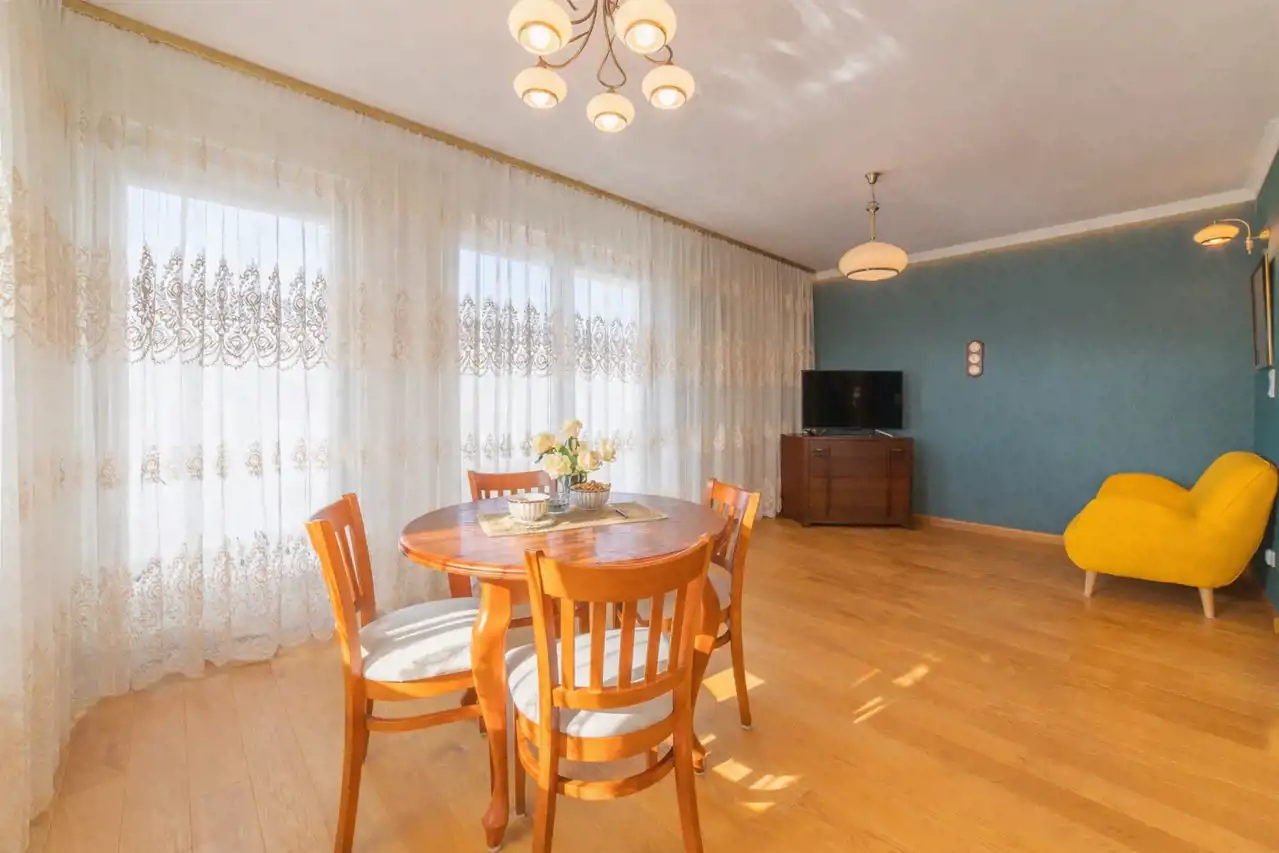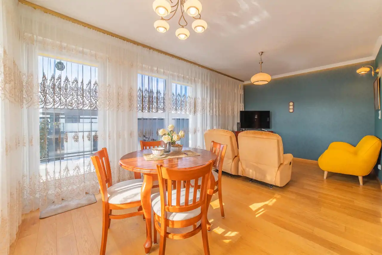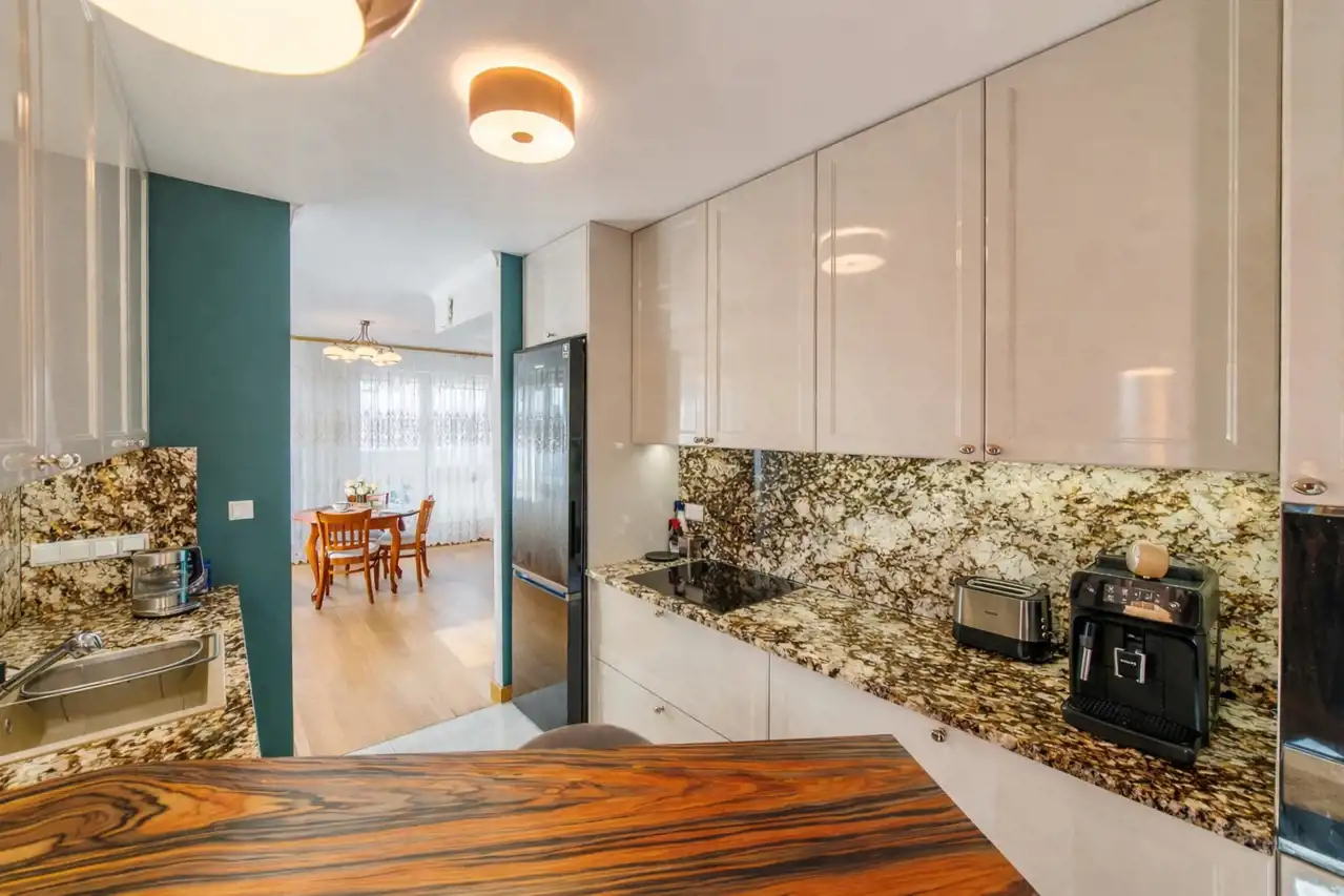 The apartment is in perfect condition. Finished to a high standard, well designed, fully furnished and equipped. Heating and hot water are supplied from the municipal network (no gas heater in the apartment). The terrace surrounds the apartment on three sides.