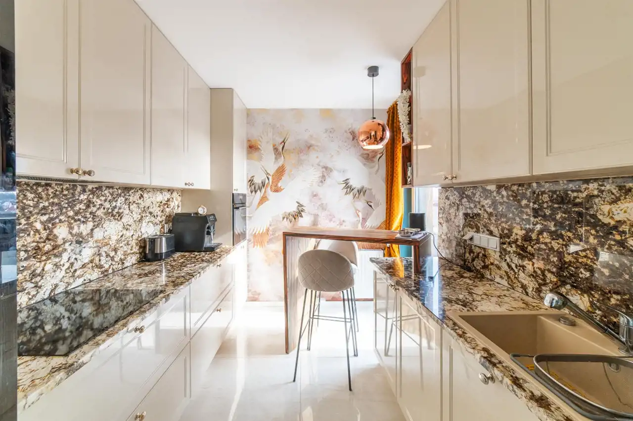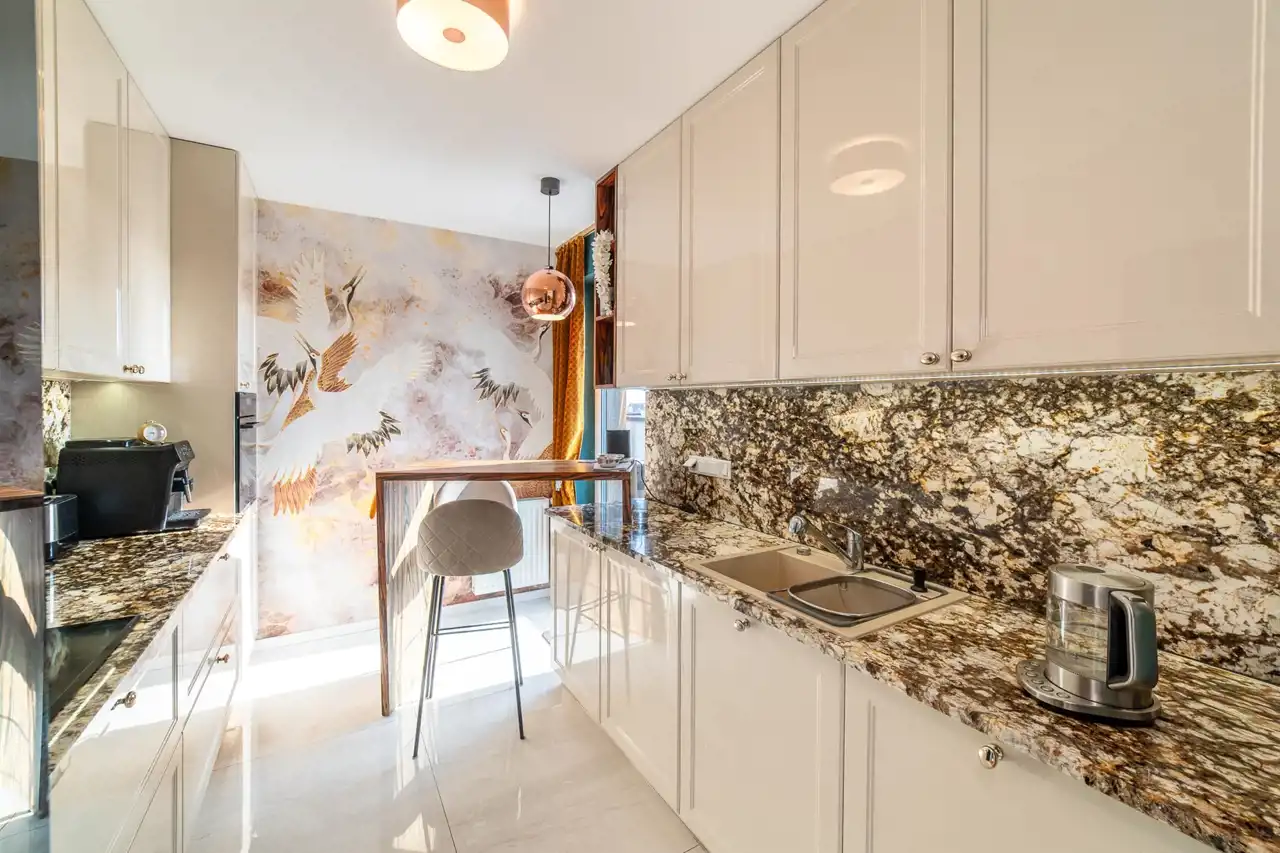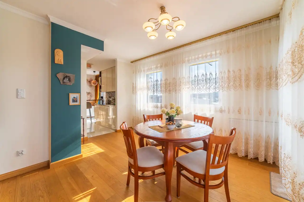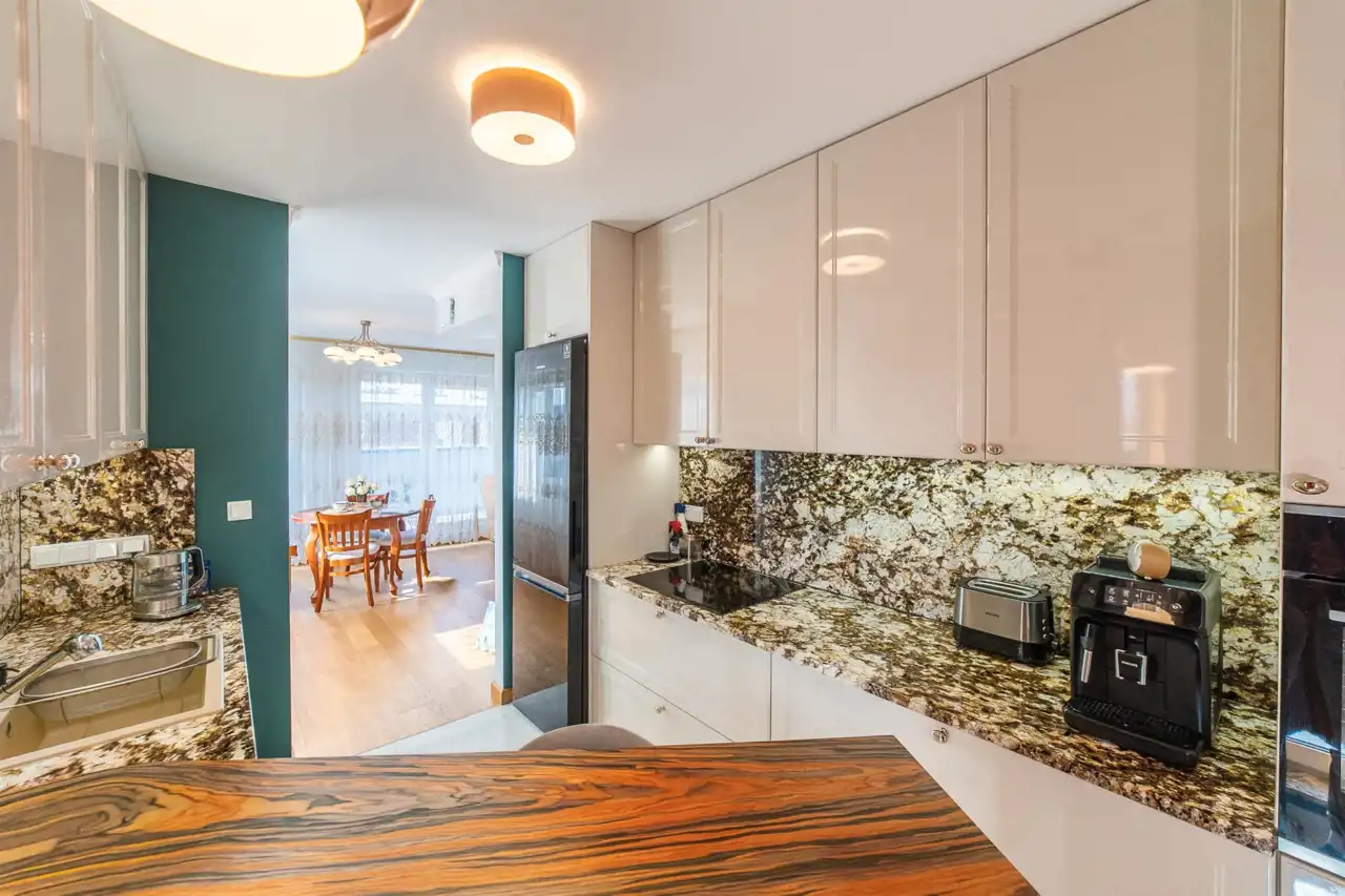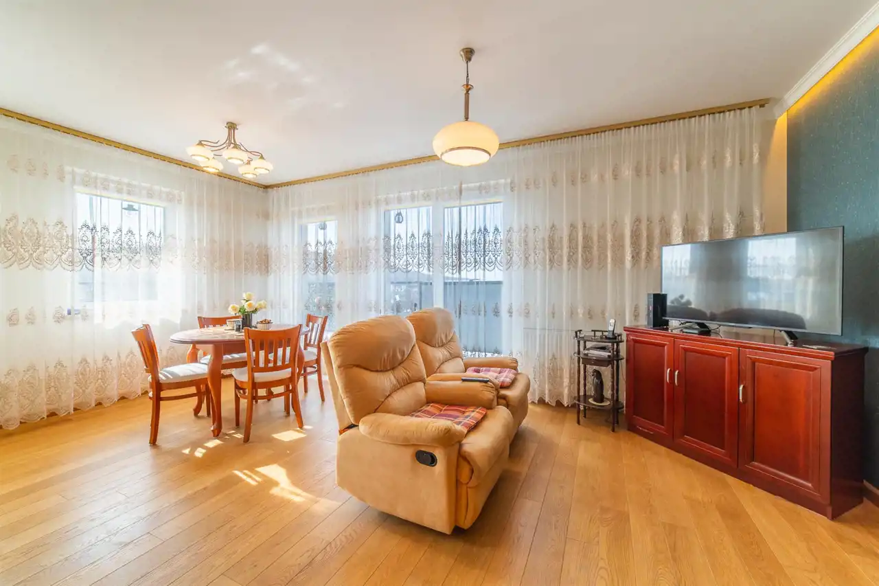 The apartment is in perfect condition. Finished to a high standard, well designed, fully furnished and equipped. Heating and hot water are supplied from the municipal network (no gas heater in the apartment). The terrace surrounds the apartment on three sides.
