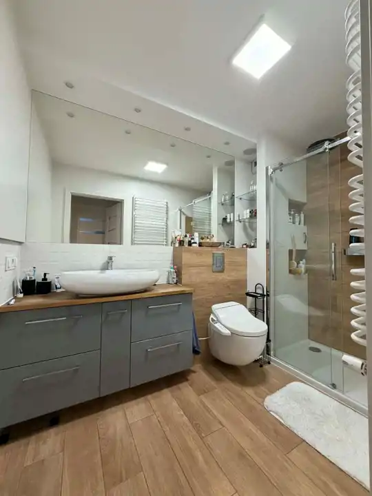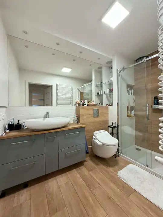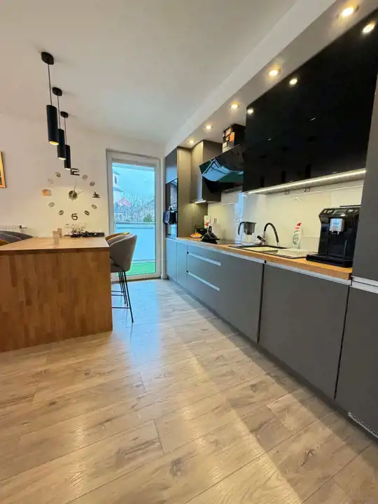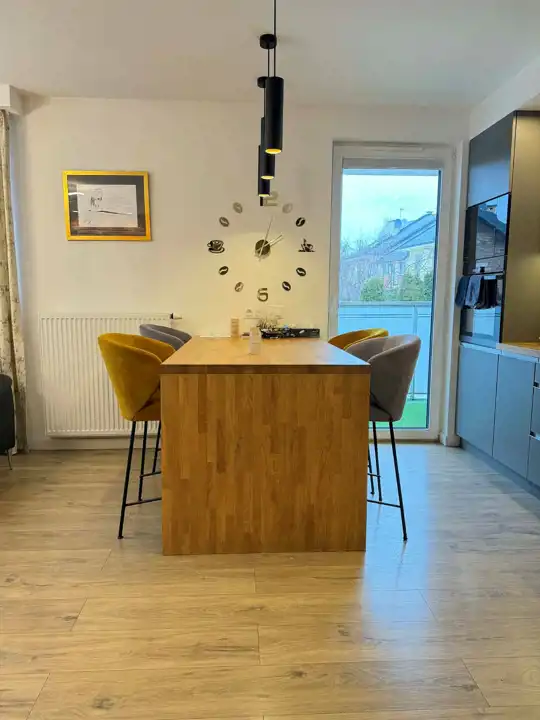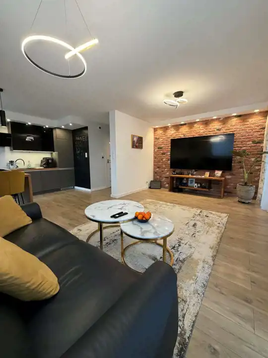 Mieszkanie o powierzchni 79,60 m² zostało wykończone z dbałością o detale, w nowoczesnym i ponadczasowym stylu. Jest w pełni umeblowane i wyposażone – gotowe do zamieszkania bez żadnych dodatkowych nakładów.