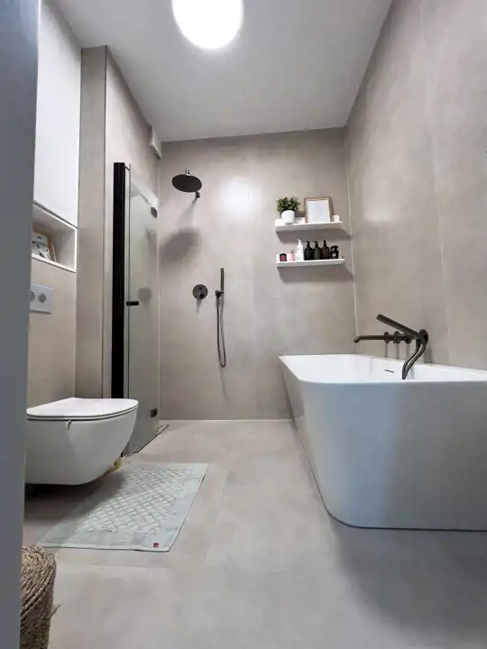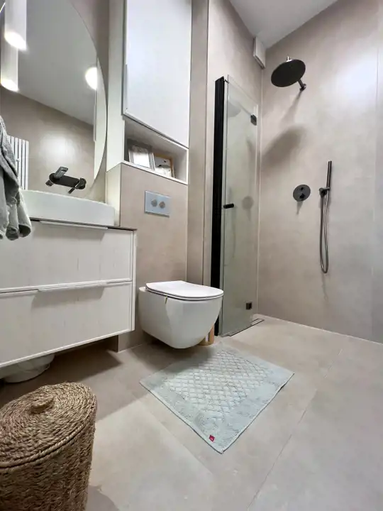 - Dwie łazienki – komfort, którego oczekuje wymagający klient. Główna łazienka: Przestronna, elegancka, rodzinna. Znajdziesz tu wannę i komfortowy prysznic, idealne zarówno na szybkie poranki, jak i wieczorny relaks. Druga łazienka Z WC i funkcjonalną umywalką – idealna dla gości i mieszkańców, podnosząca wygodę codziennego życia.