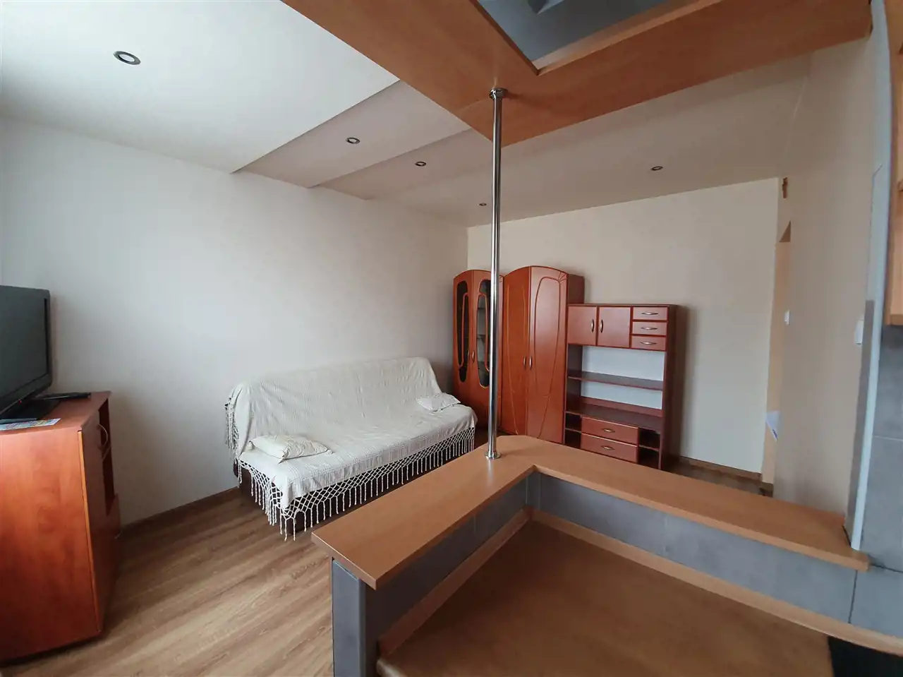 Studio apartment with an area of 22.5 m², located on the fourth floor of a block in the Czarnów housing estate, at Lecha Street. The apartment is furnished and equipped. PVC windows, district heating, hot water from a gas heater. The property consists of a living room with a kitchenette, a bathroom, and a hallway. The apartment includes a basement storage room.