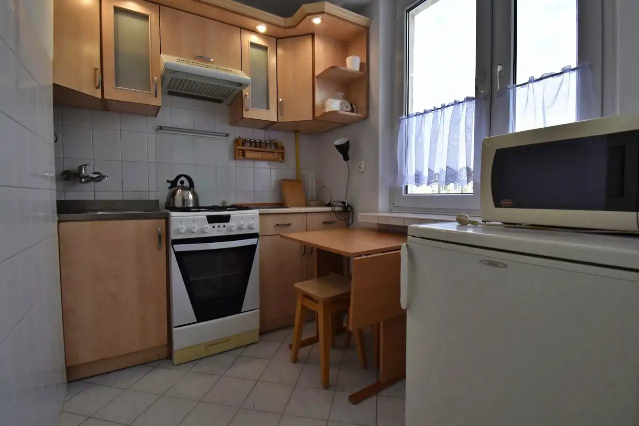 Monthly costs: PLN 1,200 + administrative fee approx. PLN 360 (based on 1 person, including advance payments for cold water, waste collection, and heating) + utilities according to meter readings (electricity and gas). Security deposit: one month’s rent – PLN 1,200.