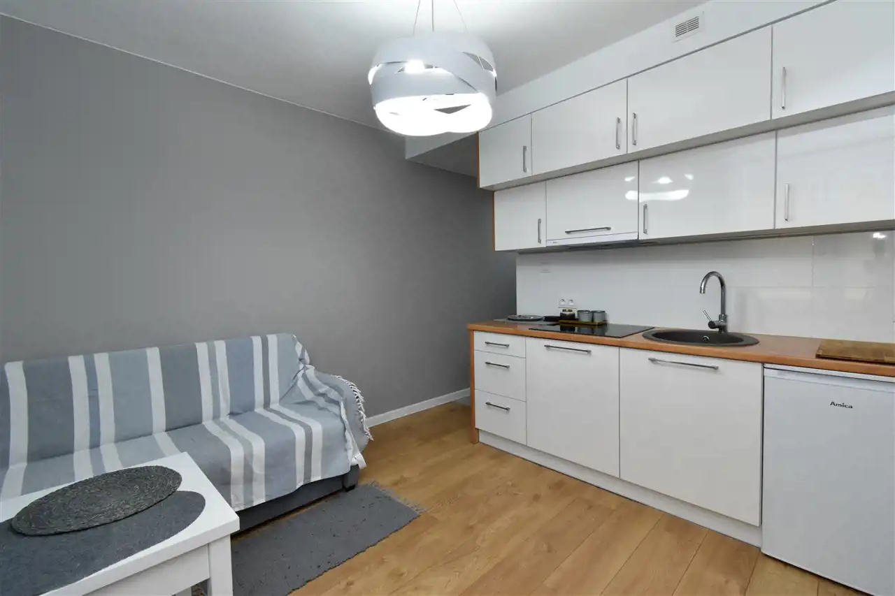 Mieszkanie ładne, jasne, urządzone w nowoczesnym stylu, po remoncie, wymienione instalacje, nowe zabudowy i meble, nowy sprzęt ( lodówka, pralka, zmywarka, płyta, piekarnik, okap), kanapa, stolik.