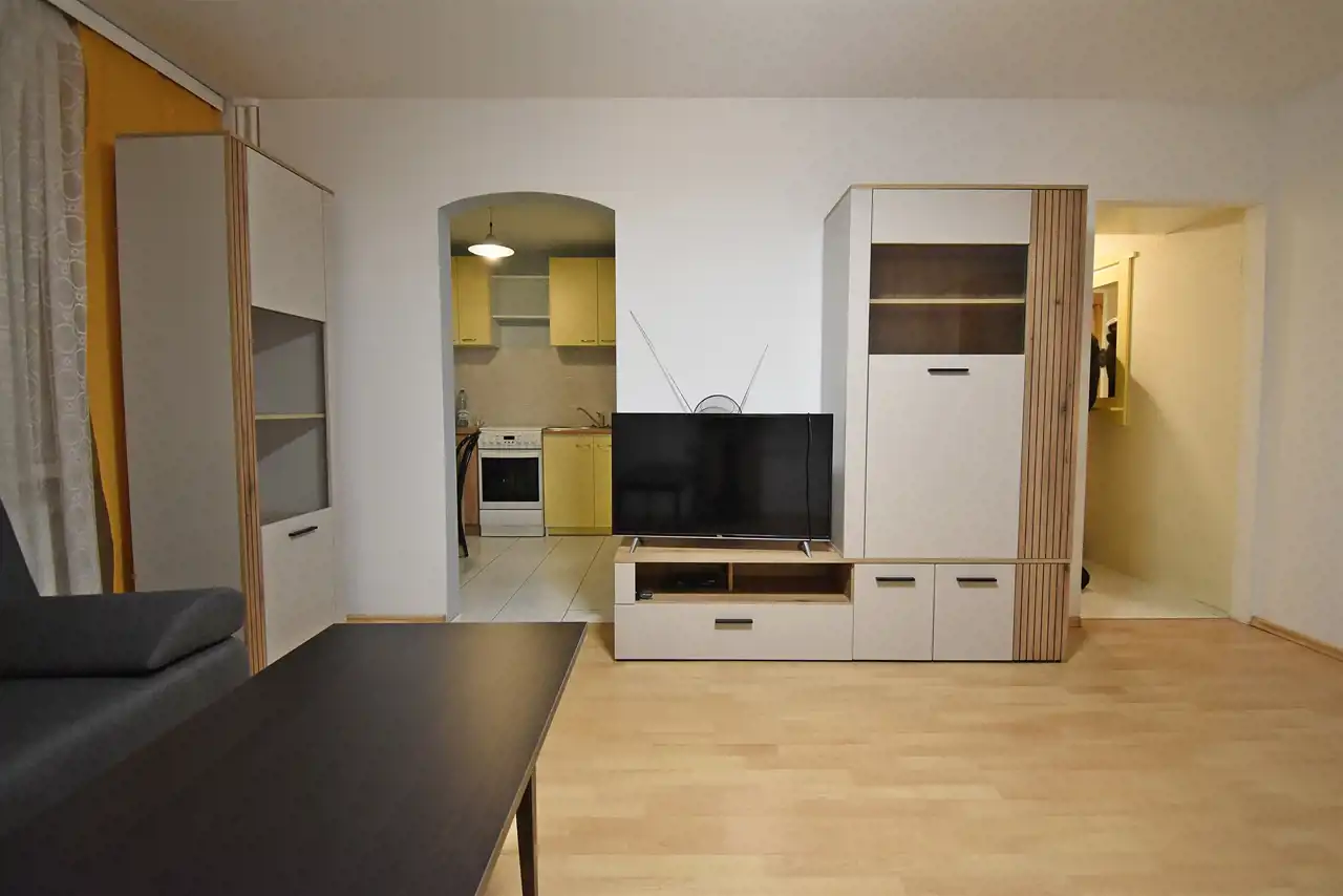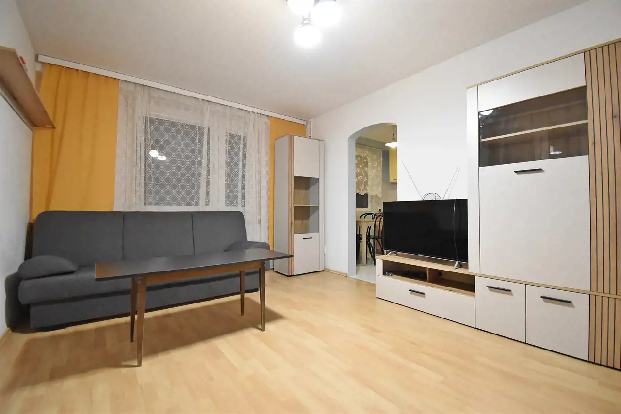 One-room apartment with an area of 28.3 sqm, located at Wielkopolska Street, in the KSM housing estate. The apartment is situated on the 1st floor of a 4-story building from around 1970.