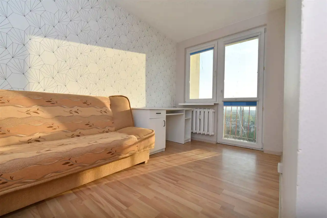 Mieszkanie 2- pokojowe na 10-ym piętrze w bloku 10- piętrowym.