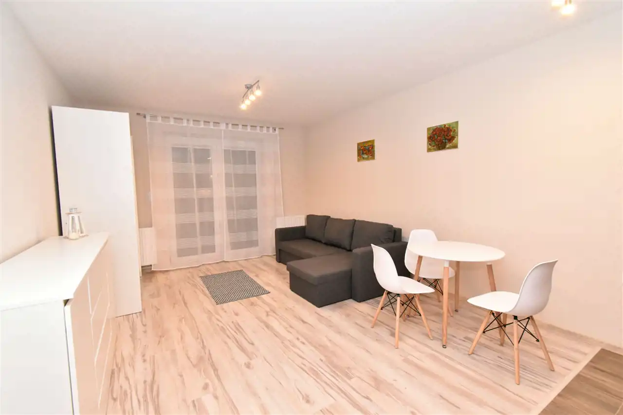 W skład mieszkania wchodzą: salon z aneksem kuchennym, łazienka razem z WC, przedpokój. W budynku winda, przestronna klatka.