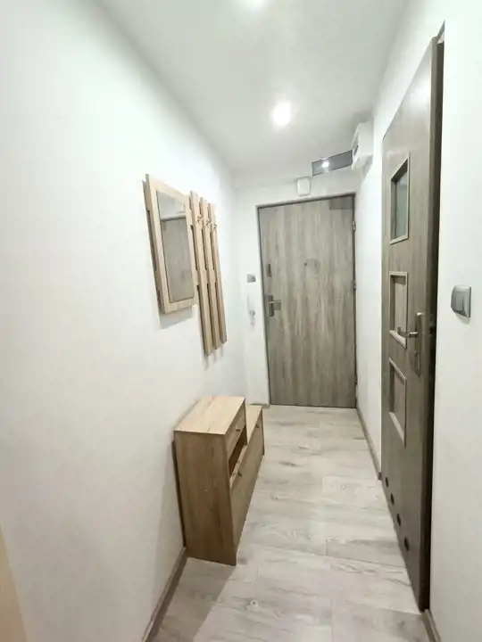 - przedpokój z komodą i wieszakiem oraz lustrem