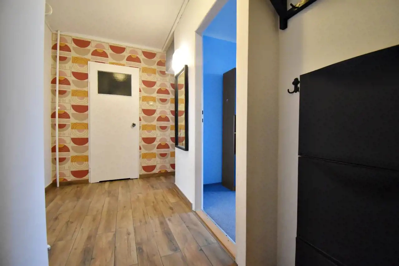Very good location, close to the city centre. In the immediate vicinity there are numerous shops, service points, a city park, and walking areas. The apartment is warm and quiet. Heating from a private boiler room, hot water supplied by a gas heater.