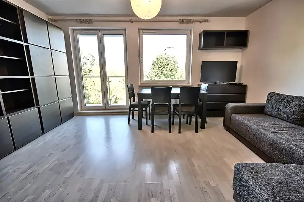 Rental cost: 1550 PLN the rent + 421 PLN maintenance fee (including water and garbage pre-payments) + electricity and gas. One-month deposit required.