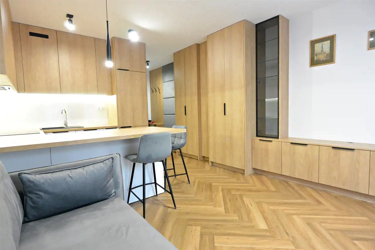 For rent: a 1-room apartment with an area of 25 m2, located on the 3rd floor of a 4-storey apartment building from 2023, in the city center of Kielce, at Kozia Street.
