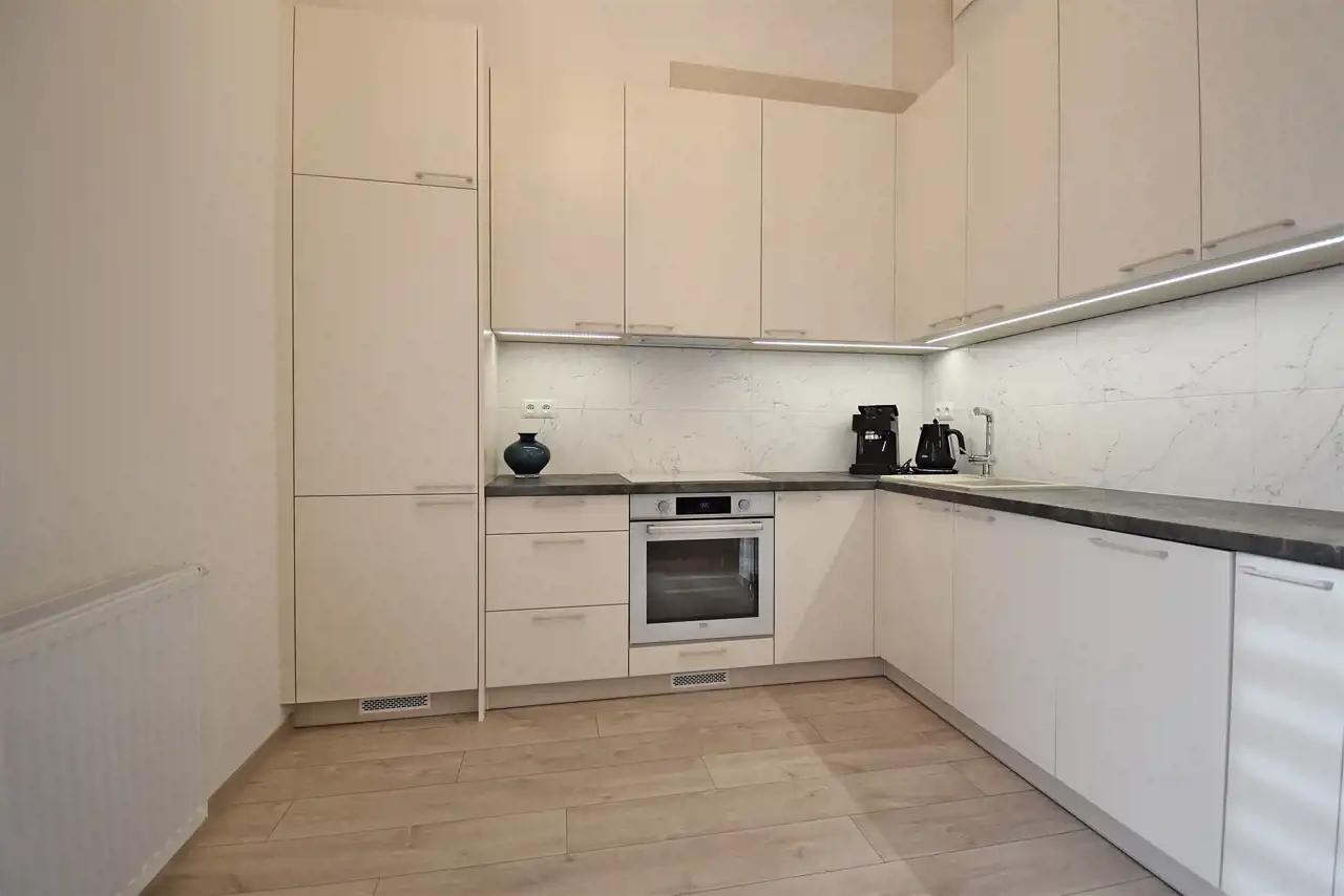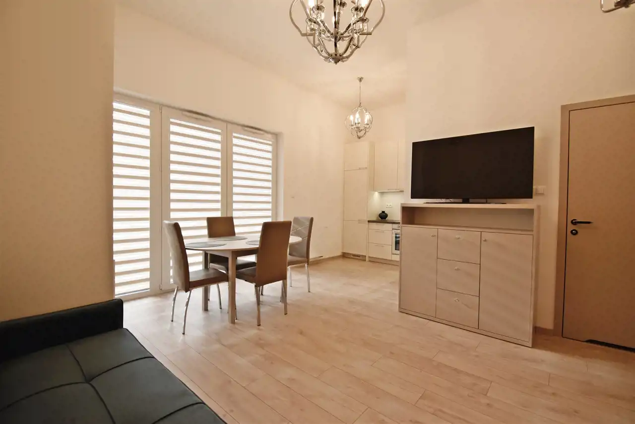 The apartment is new, finished to a high standard, fully furnished and equipped with essential household appliances.