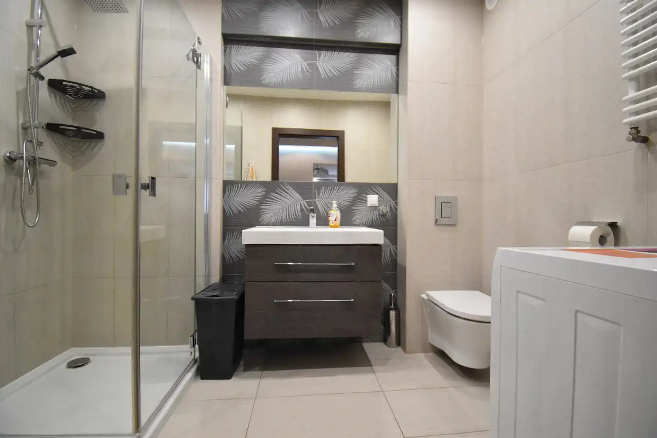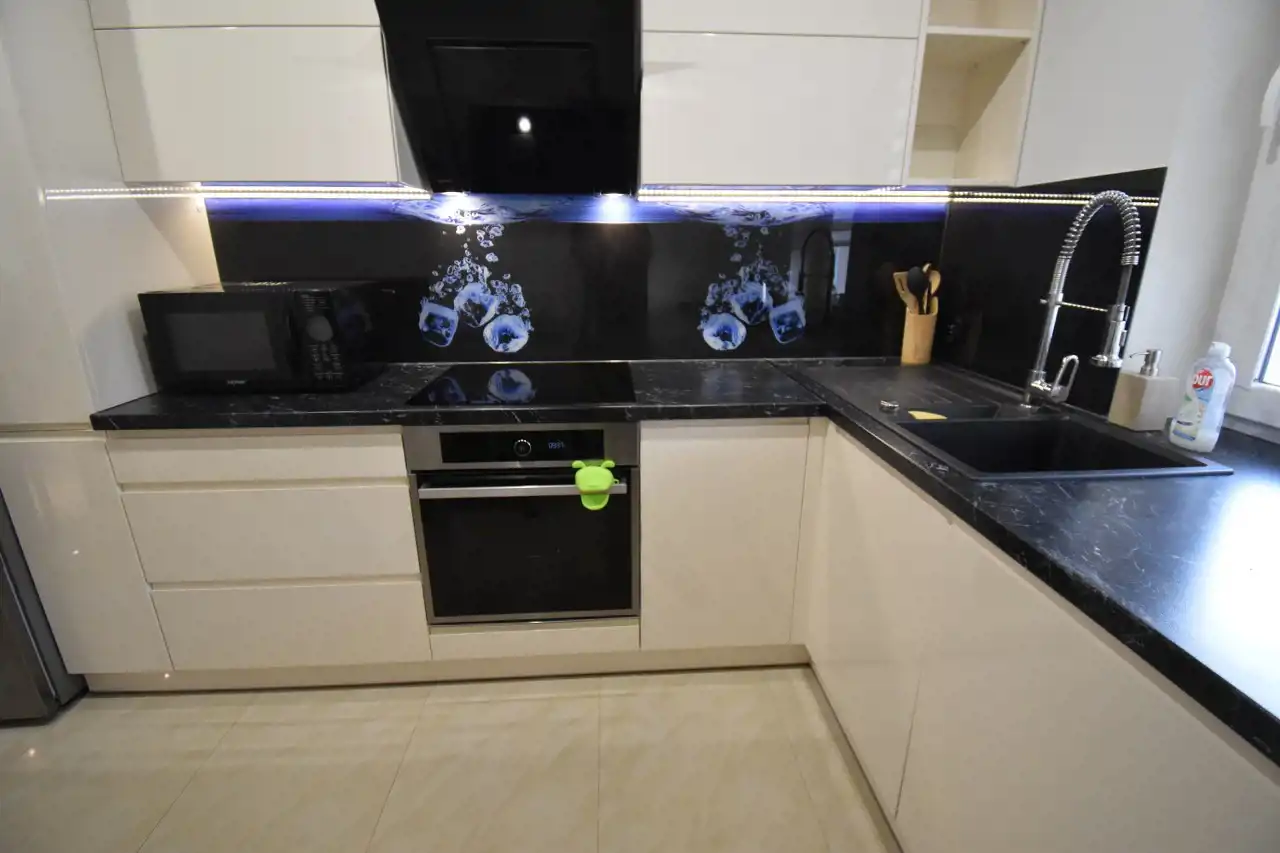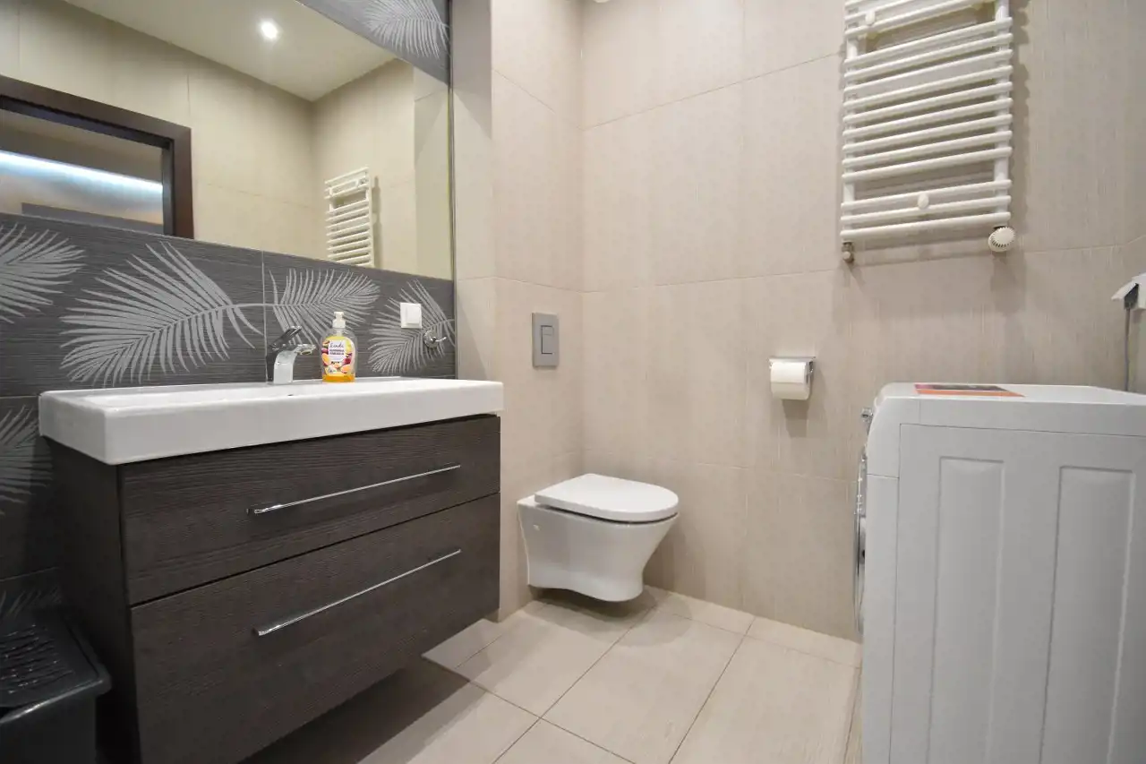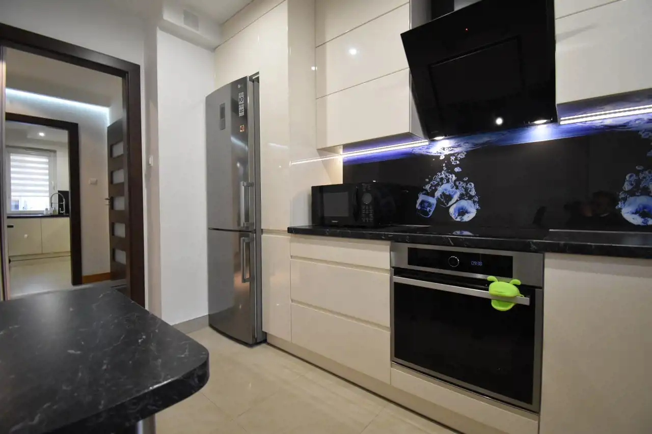 Mieszkanie w pełni umeblowane i wyposażone, wykończone przy użyciu wysokiej jakości materiałów.
