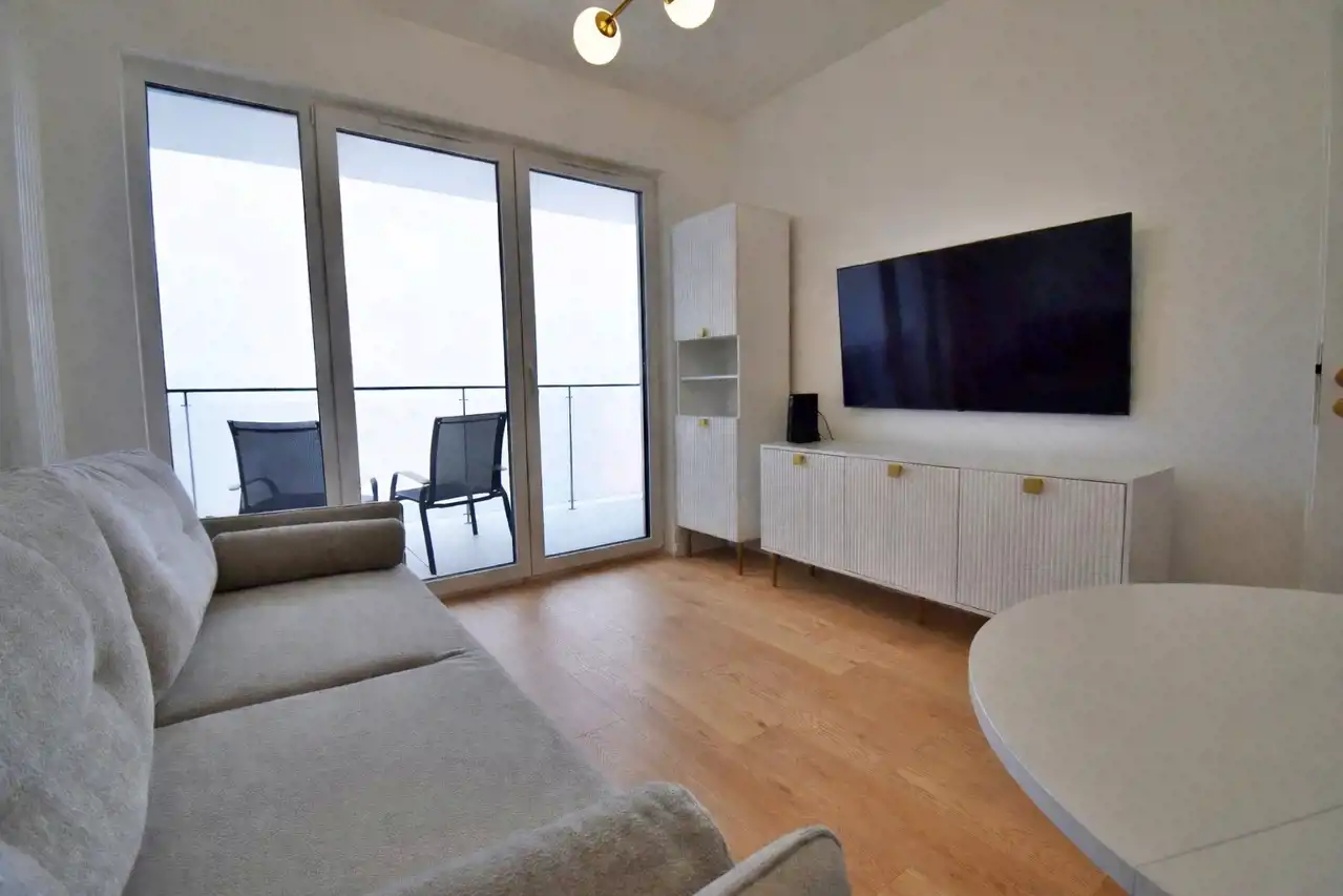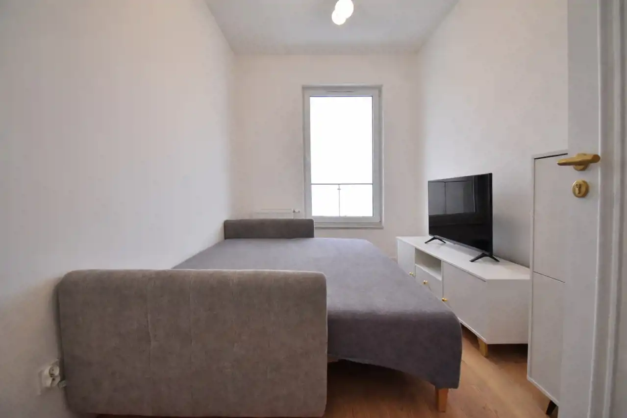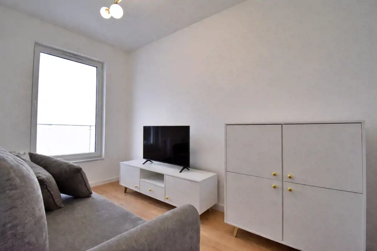 A modern, two-room apartment with an area of 37.7 m² is available for rent, located on the 4th floor of a 4-storey building in the new Sowia Park development.