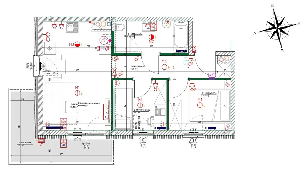 - Charakterystyka mieszkania 43.45 m2, 3 pokoje