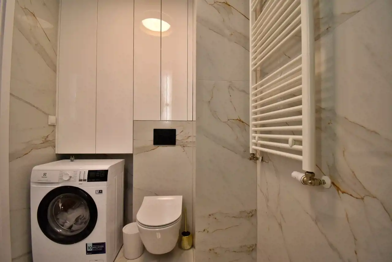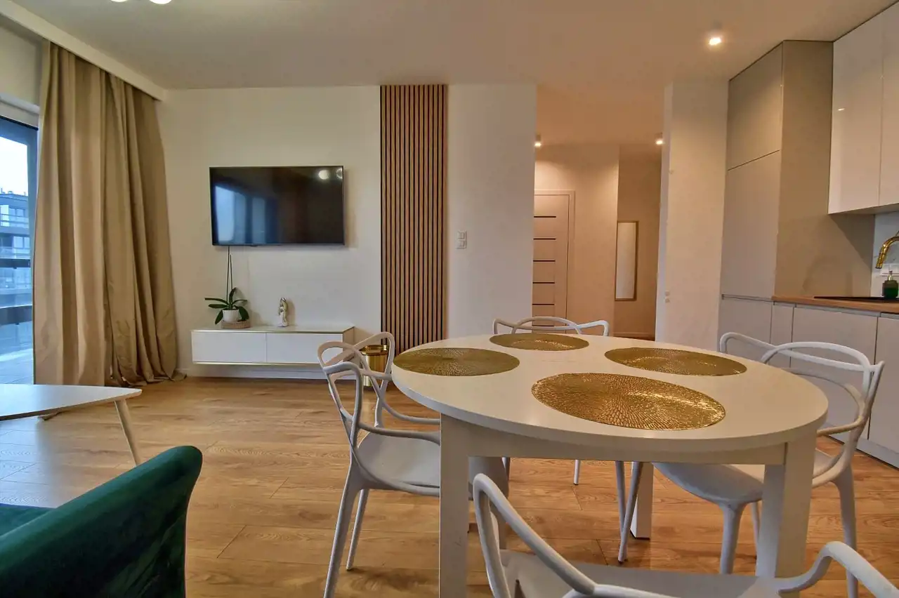 Additionally, the apartment comes with a parking space in the underground garage, available for an extra 300 PLN/month.