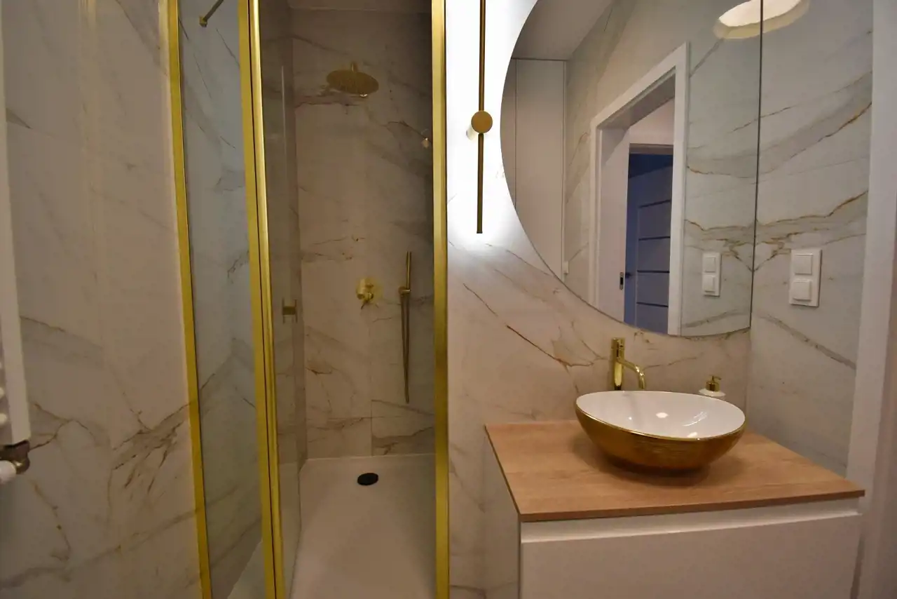 - łazienka z kabiną prysznicową,
