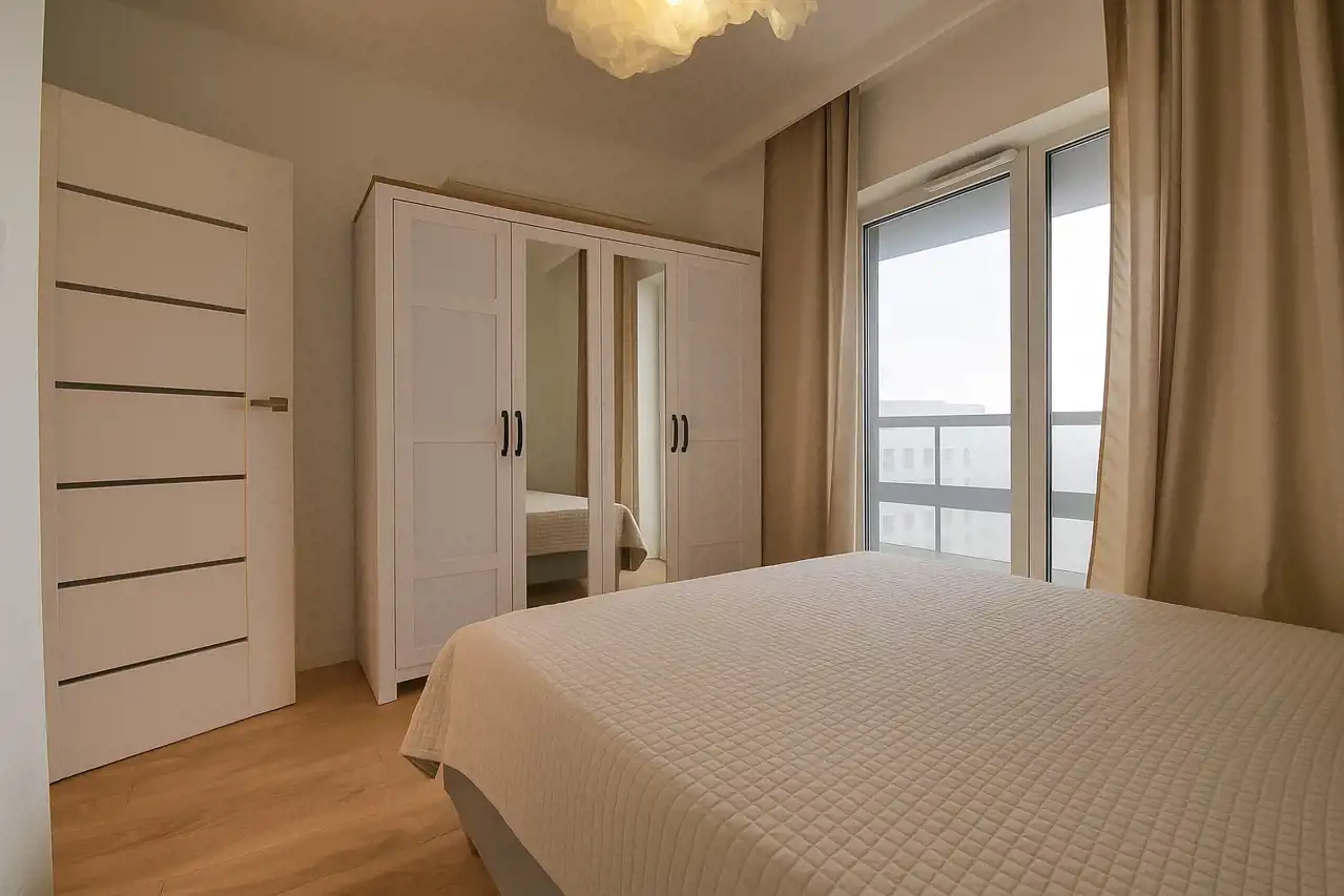 For rent: a modern, fully furnished 2-room apartment with an area of 48.54 m², located in the prestigious Plaza Tower building on Zagnańska Street, in the centre of Kielce. The apartment is situated on the 3rd floor.