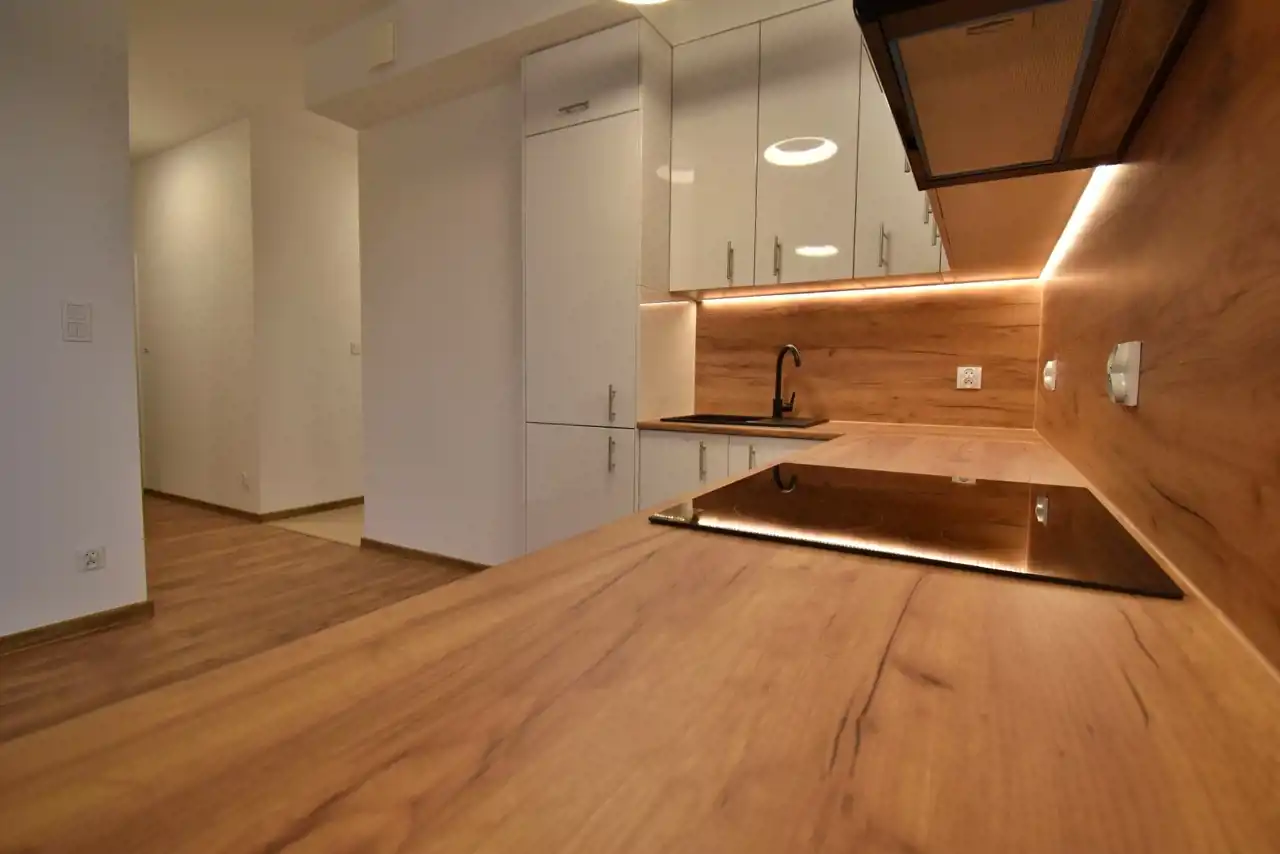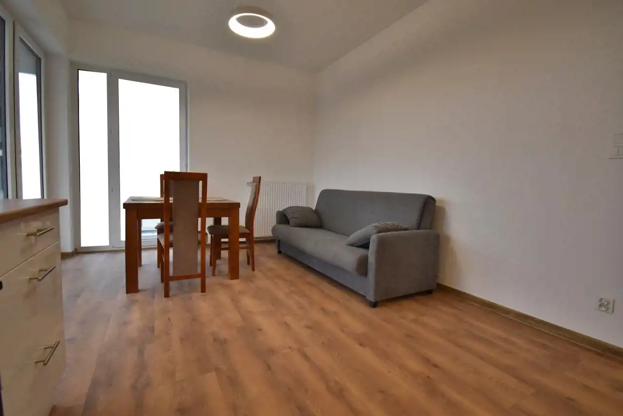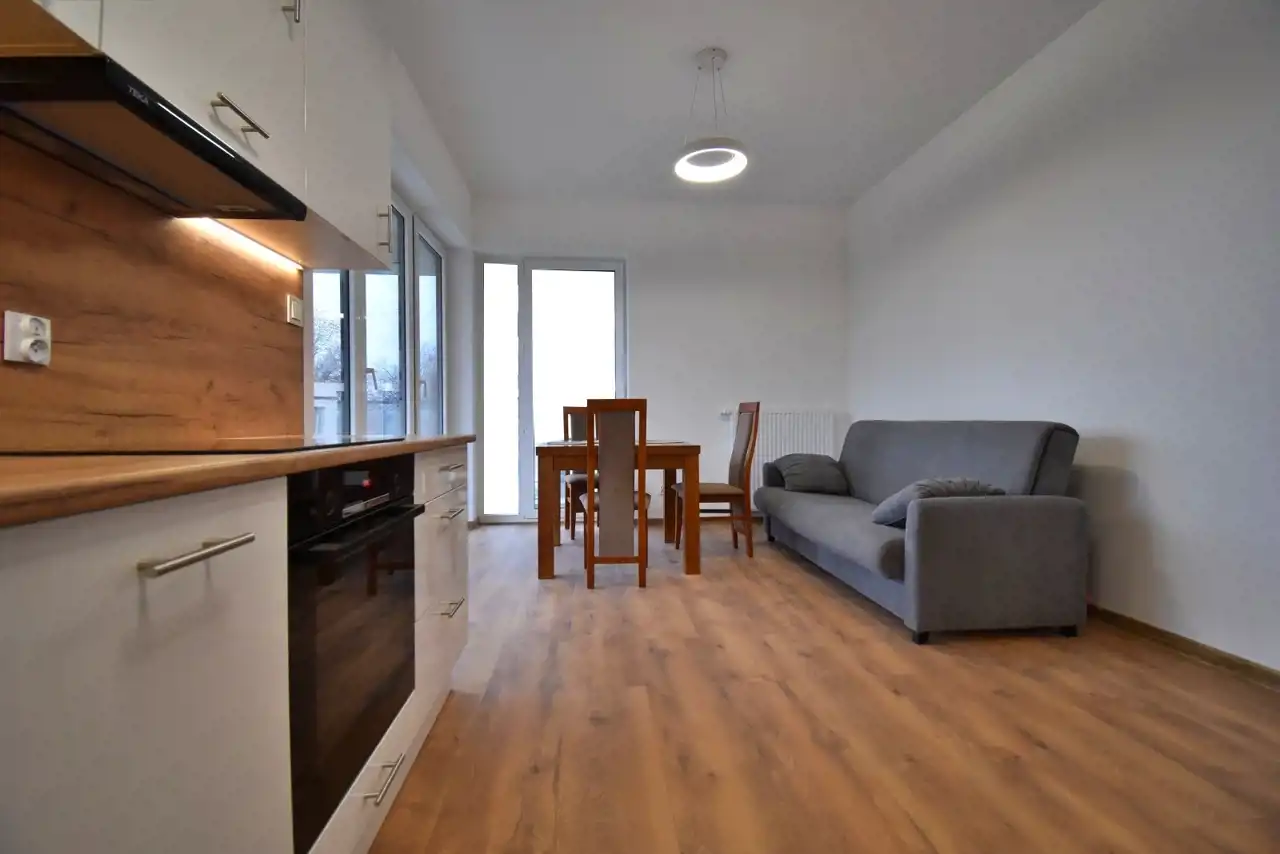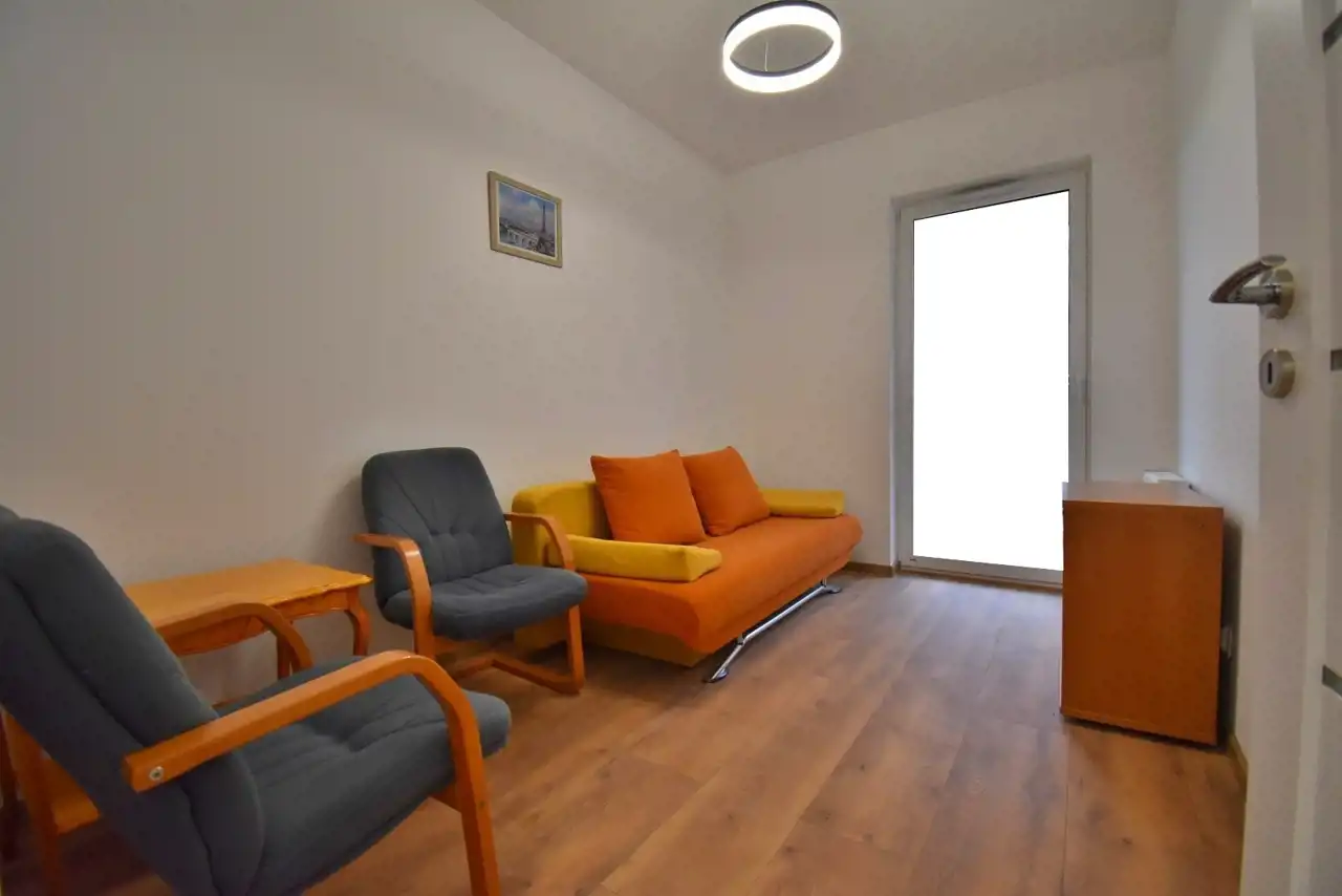 Brand-new apartment, finished to a high standard, fully furnished and equipped with essential household appliances.