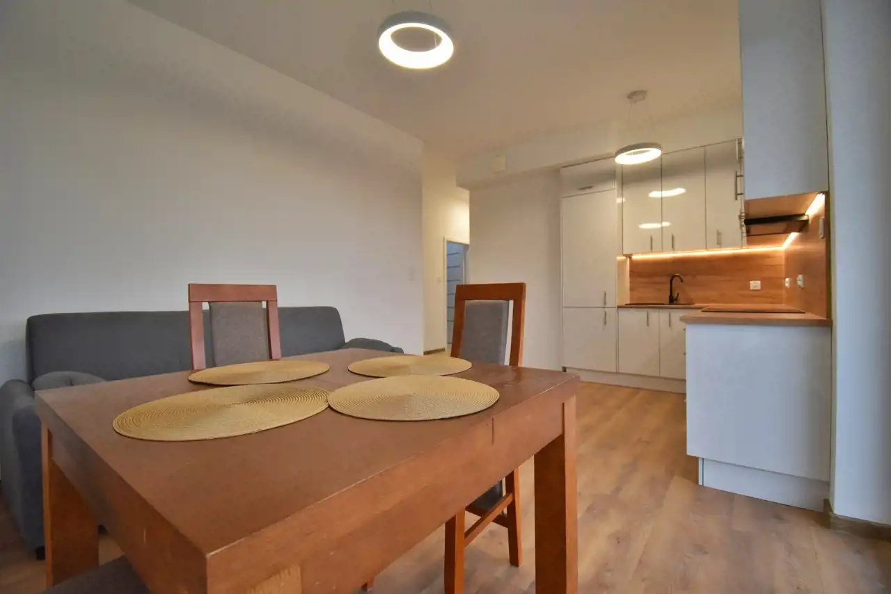 Mieszkanie nowe, wykończone w wysokim standardzie, w pełni umeblowane i wyposażone w niezbędne sprzęty AGD.