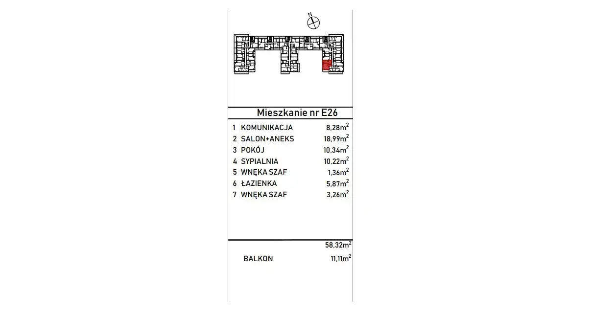 - Charakterystyka mieszkania 64.23 m2, 3 pokoje