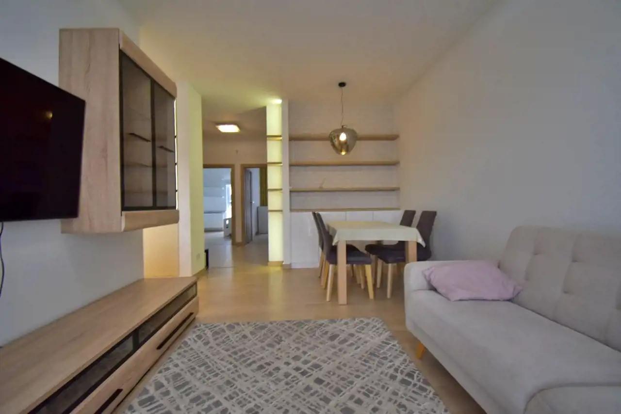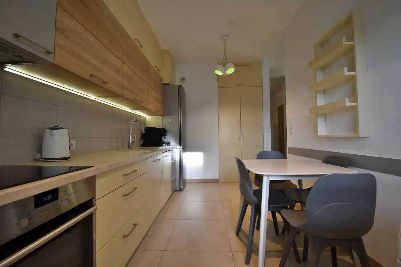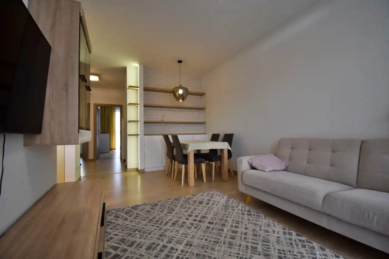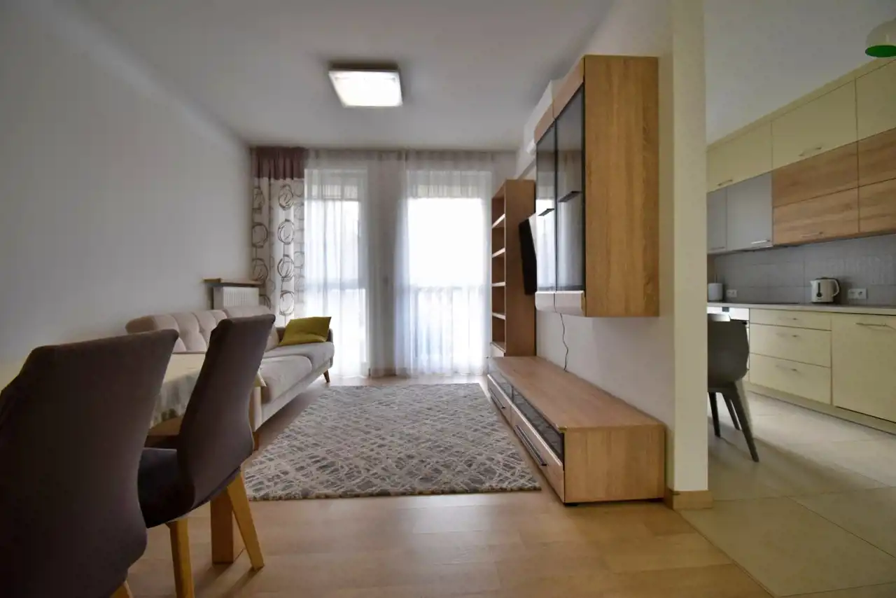 The apartment is located in a modern building with a view of green areas (Telegraf Hill), while at the same time being very well connected with the rest of the city. Nearby there are bus stops, shops, offices, a park, and a school.