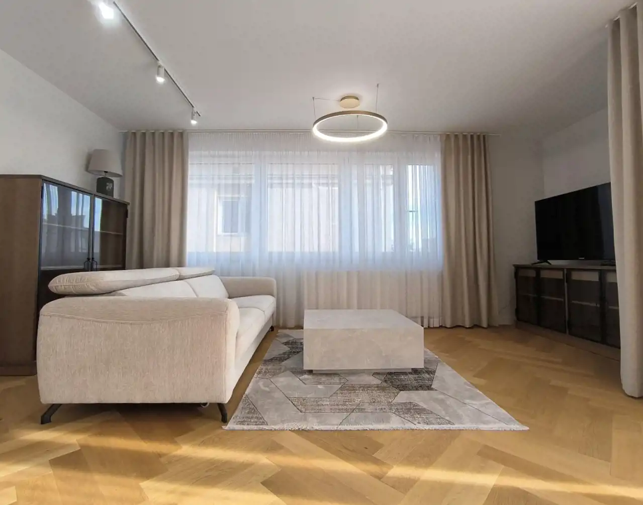 Apartament ma powierzchnię 96,92 m2, na którą składa się wielki, fantastycznie doświetlony salon z kuchnią i jadalnią, dwie sypialnie z wyjściem na balkon, gabinet, łazienka z WC, przestronny hol oraz garderoba. Mieszkanie znajduje się na trzecim piętrze w nowym budynku z windą wybudowanym w 2018 roku, położonym przy ul. Panoramicznej 2. Wykończone w nowoczesnym stylu przez architekta wnętrz. Kompletnie umeblowane i wyposażone w sprzęt AGD/RTV (telewizor, lodówka, pralka, zmywarka, płyta indukcyjna, piekarnik elektryczny, czajnik i inne wyposażenie drobne). Ponadto możliwe jest doposażenie, na życzenie przyszłego Najemcy. Ogrzewanie i ciepła woda z sieci miejskiej. Bardzo dobre docieplenie i nowe okna sprawiają, że jest oszczędne w eksploatacji. Czynsz do wspólnoty wynosi 847 zł/m-c. Obejmuje ogrzewanie, sprzątanie i utrzymanie części wspólnych, fundusz remontowy oraz obsługę administracyjną. Ponadto w cenie do dyspozycji Najemcy miejsce postojowe w hali garażowej. Istnieje możliwość wynajęcia dodatkowego miejsca za cenę 350,00 zł. Mieszkanie całkiem nowe, czeka na pierwszego Najemcę.