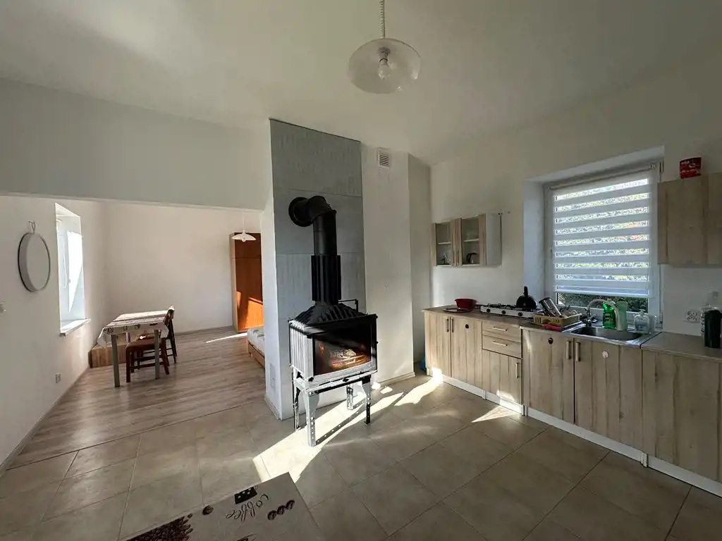 - Pokój dzienny z aneksem kuchennym oraz kominkiem – idealne miejsce na wspólne chwile z rodziną.