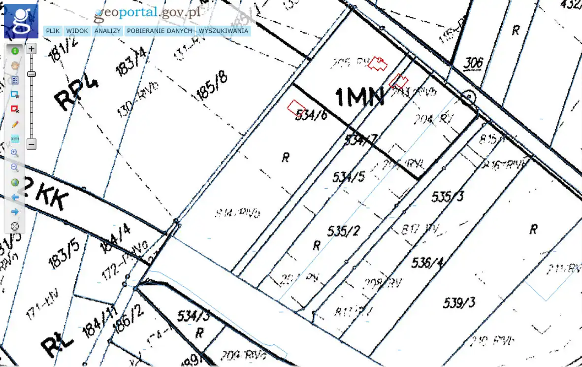 - An area of about 2700m2 is marked with the symbol MN1 - areas of existing and planned farm buildings with permission for single-family residential construction.