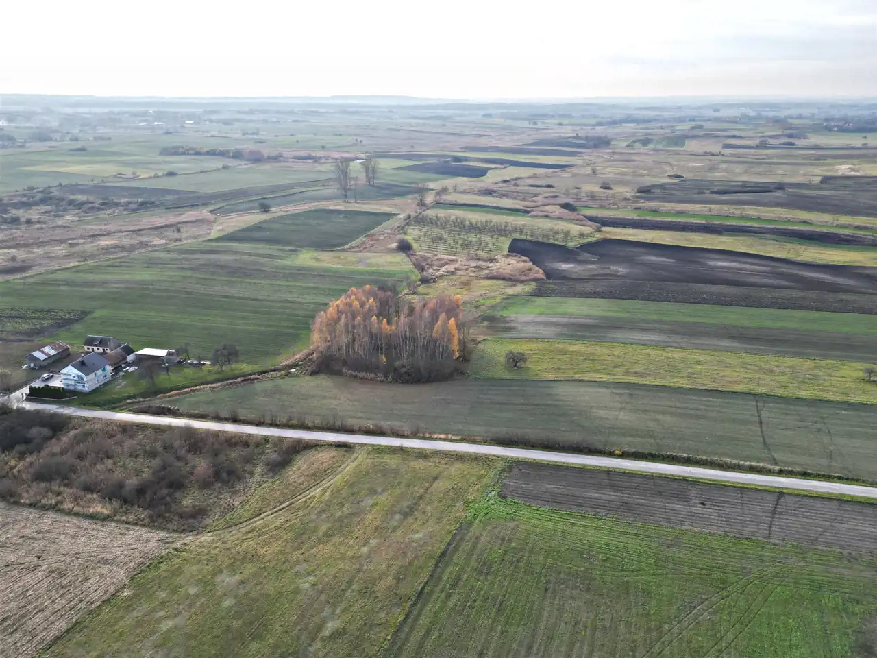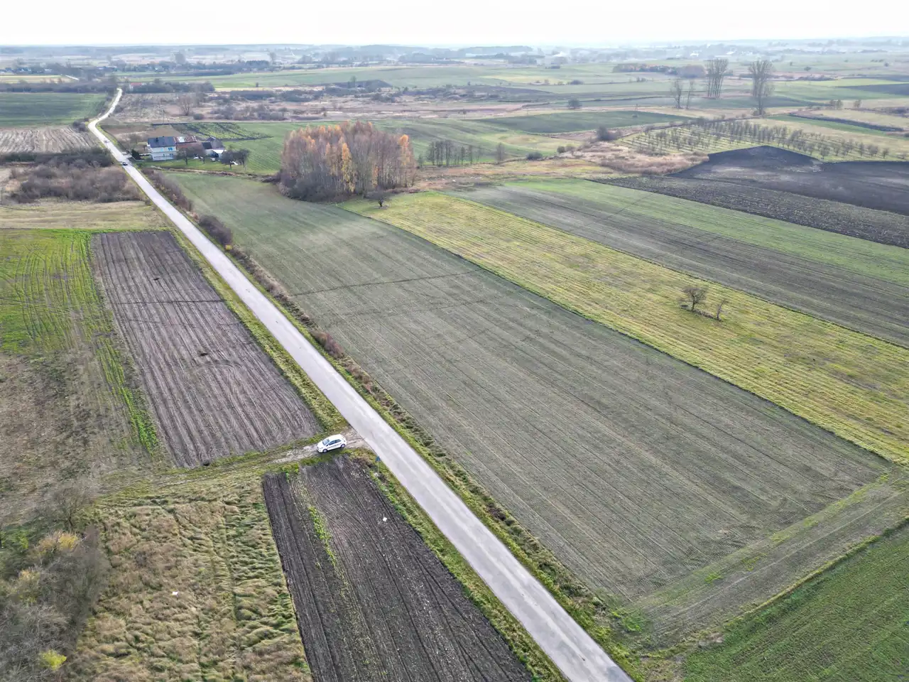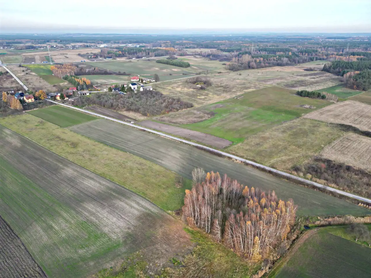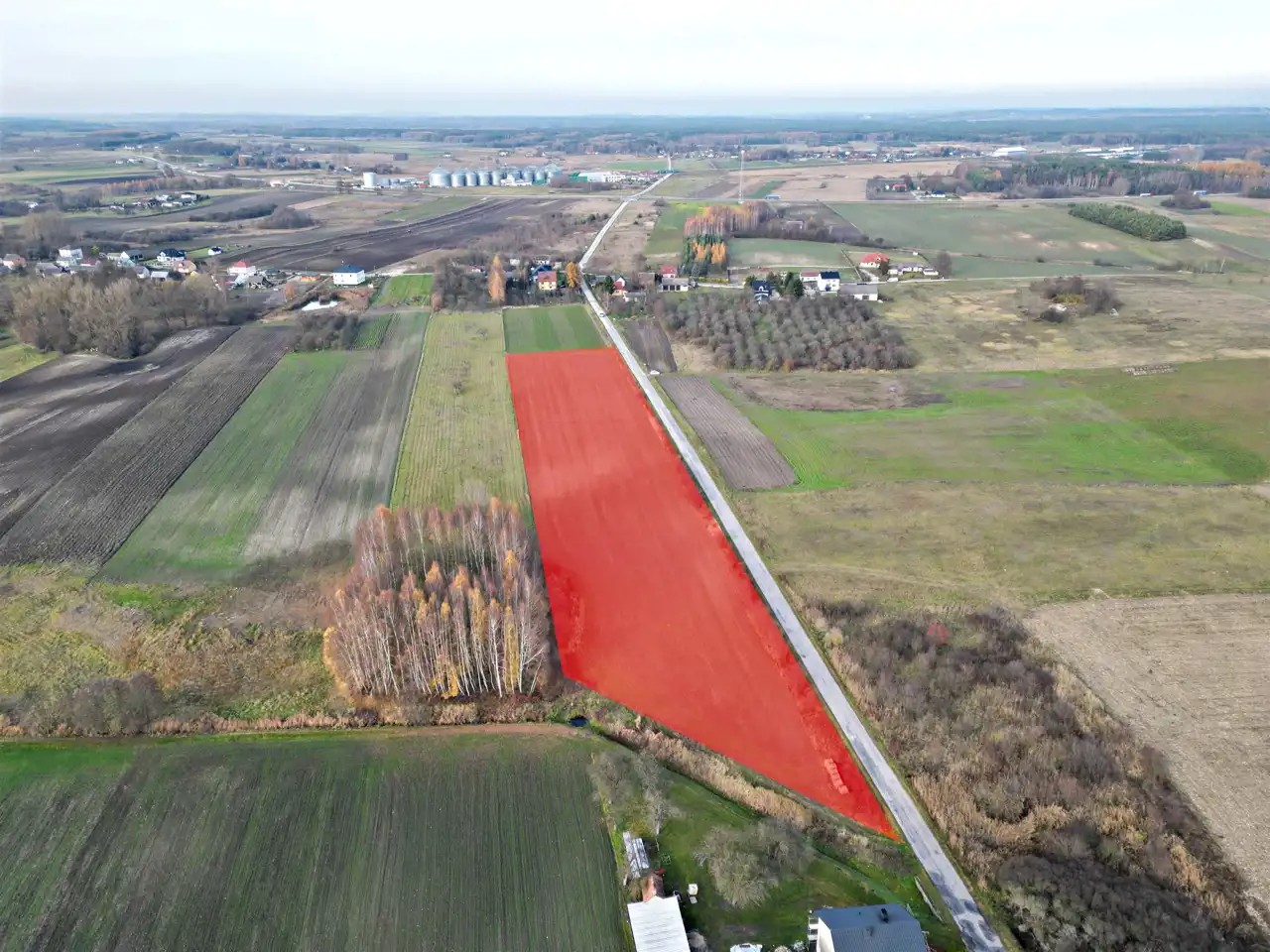 Działka o powierzchni 14 100 m2 zlokalizowana w pierwszej linii w stosunku do asfaltowej drogi powiatowej. Przybliżone wymiary działki: 313 x 71 x 264 x 50 [m]. Szerokość frontu ok. 313m.
