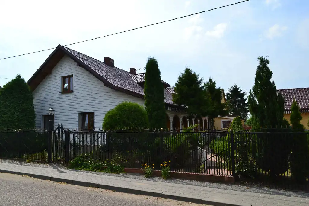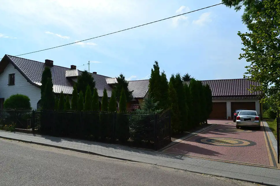 Teren przed częścią mieszkalną zagospodarowany, podjazd wyłożony kostką brukową. Do budynku gospodarczego jest możliwość wjazdu osobną bramą.