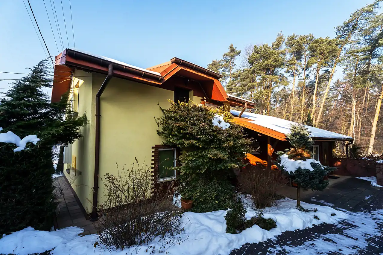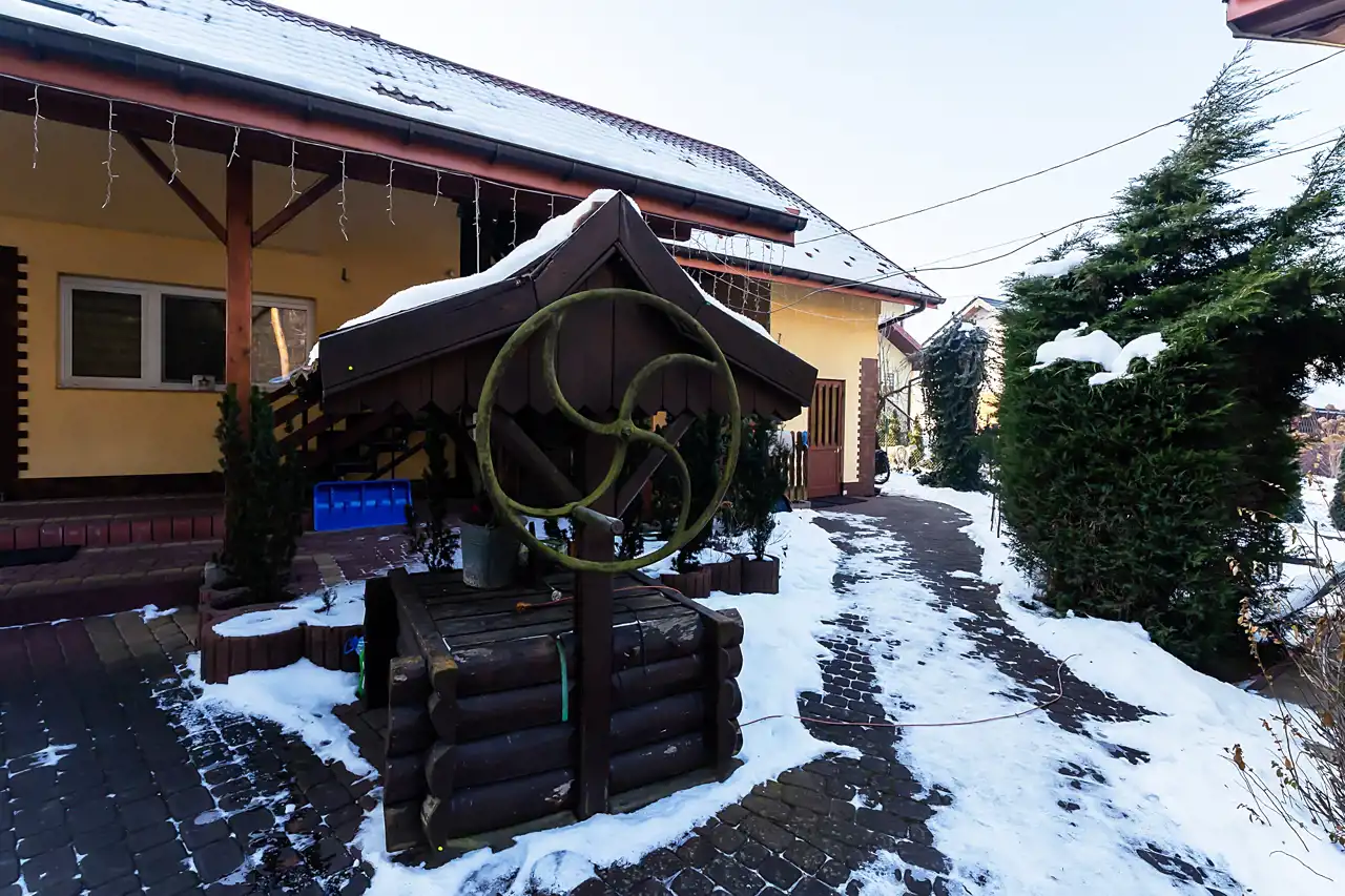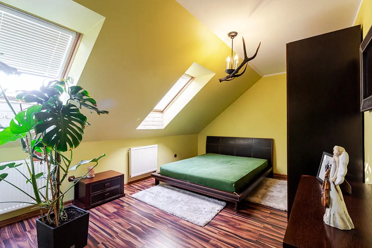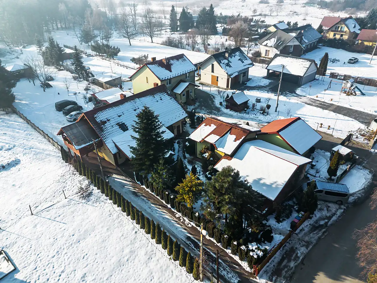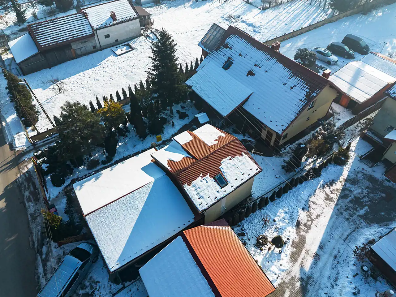 Główny budynek to wygodny, piętrowy dom podzielony na trzy niezależne mieszkania – każde z osobnym wejściem. To idealne rozwiązanie dla dużej rodziny wielopokoleniowej lub jako gotowy produkt inwestycyjny pod wynajem długoterminowy bądź krótkoterminowy.