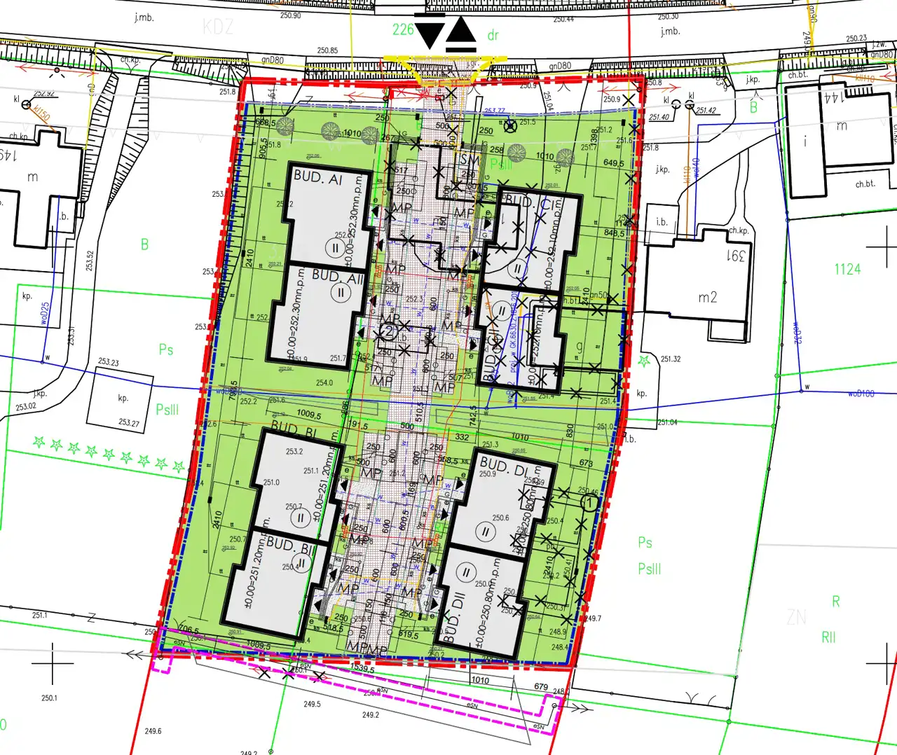 - Otoczenie działki zabudowane