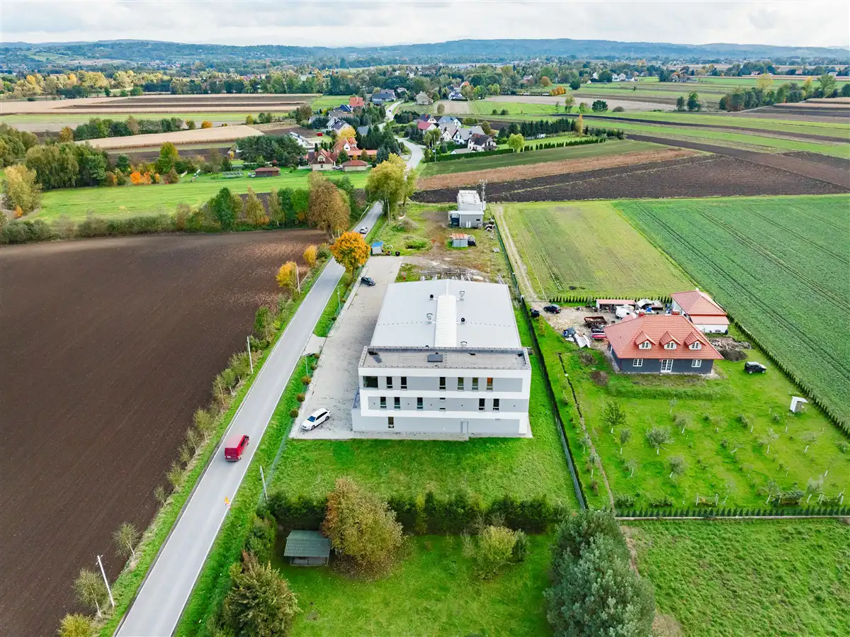 zaledwie 5 minut od węzła autostrady A4 „Targowisko” i około 20 minut od Krakowa (kierunek wschodni).