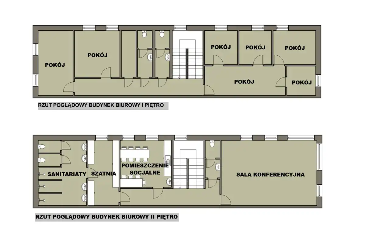 komunikacja, serwerownia, 7 pomieszczeń biurowych, 2 toalety