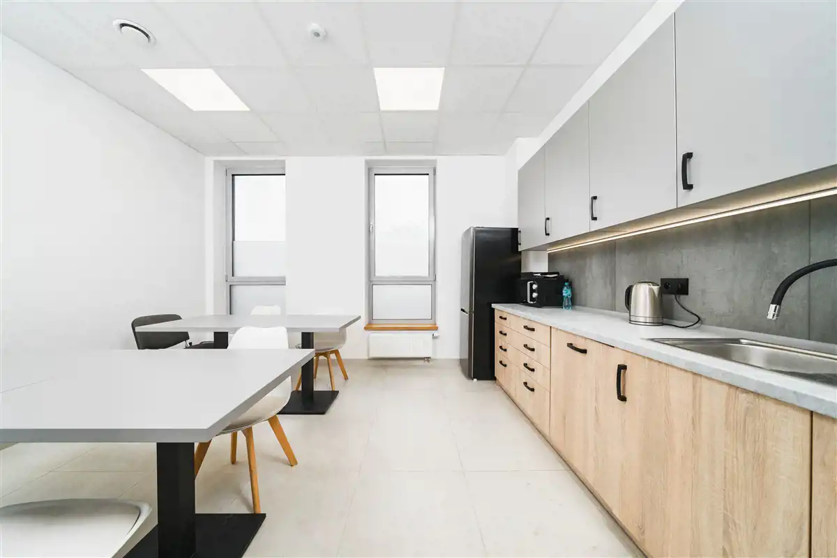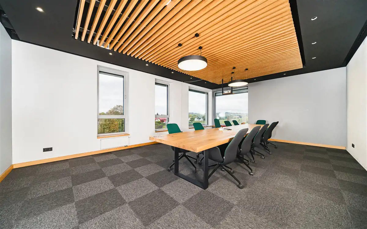 komunikacja, duże pomieszczenie socjalne, przestronna sala konferencyjna, toaleta, szatnia oraz sanitariaty z prysznicami