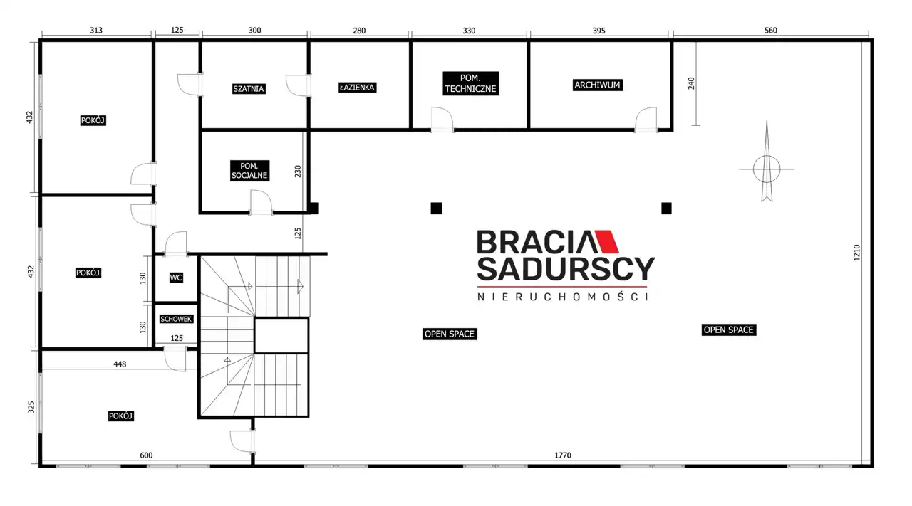 Duże pomieszczenie OPEN SPACE (możliwość podziału wg potrzeb najemcy)