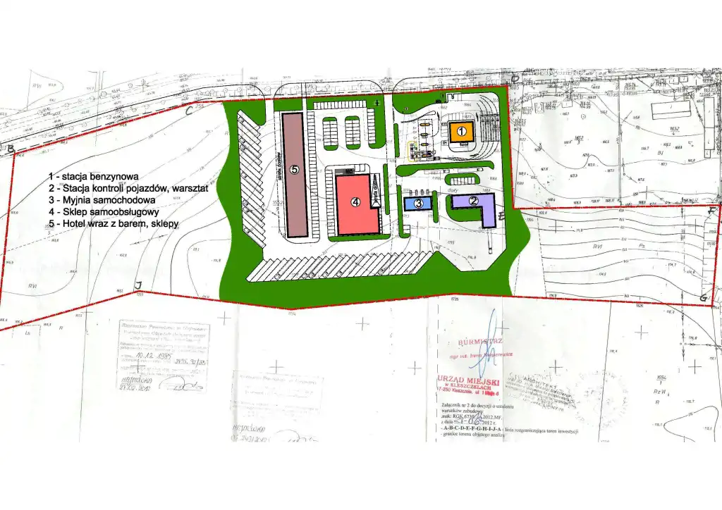 Zgodnie z planem zagospodarowania miasta Kleszczele na działce może powstać stacja benzynowa, stacja kontroli pojazdów diagnostyczna, myjnia samochodowa, sklep samoobsługowy, hotel wraz z barem oraz sklepy.