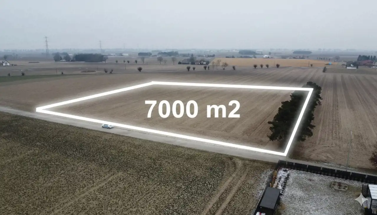 Skala i rentowność: Powierzchnia 7000 m² w kształcie prostokąta pozwala na nowoczesne rozplanowanie osiedla typu „premium” lub kameralnej zabudowy bliźniaczej.
