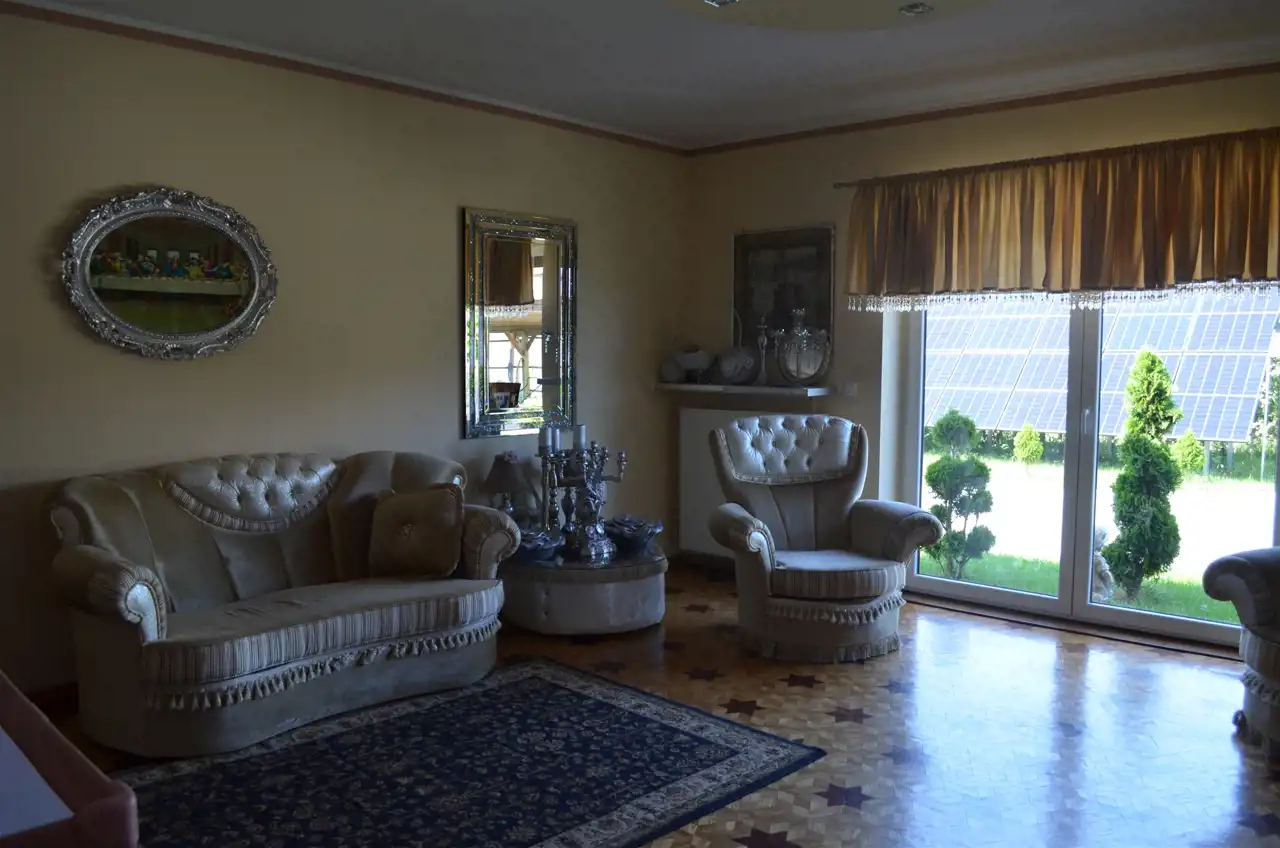 Ogrzewanie – pompa ciepła oraz panele fotowoltaiczne. Dom jest bardzo ładnie zadbany, ekonomiczny i gotowy do zamieszkania. W oknach rolety zewnętrzne, Bardzo dobra lokalizacja.