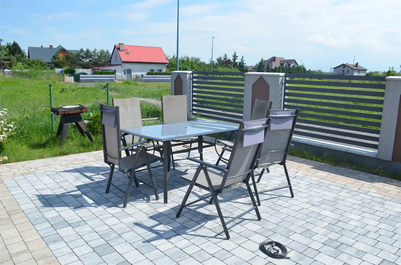 Na działce znajduje się wiata na dwa auta, panele fotowoltaiczne, studnia głębinowa, ozdobne krzewy oraz miejsce na wypoczynek ogrodowy.