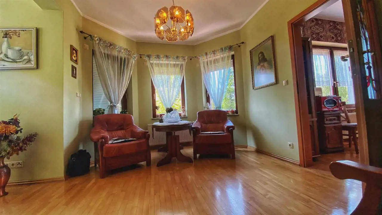 Na sprzedaż wyjątkowy, wolnostojący dom z 2009 roku, wybudowany z materiałów najwyższej jakości. Każdy element konstrukcji jest przemyślany oraz udokumentowany – od faktur po świadectwo energetyczne. Dach pokryty wysokiej klasy dachówką ceramiczną, podłogi drewniane w całym domu, drewniane okna oraz antywłamaniowe rolety, które można obsługiwać pilotem lub przy każdym oknie – komfort i bezpieczeństwo w pełni zapewnione.