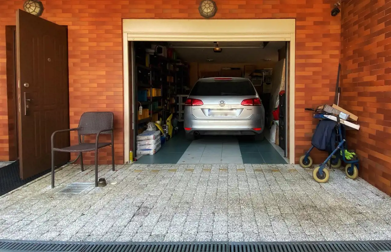 Garaż jednostanowiskowy z dwiema bramami, z których jedna jest antywłamaniowa.