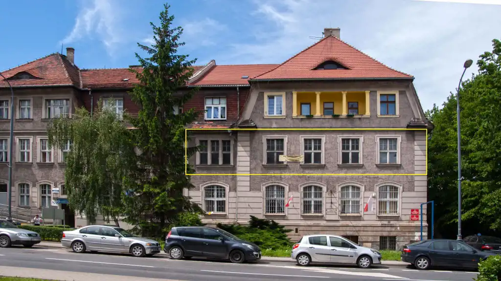Powierzchnia przeznaczona do najmu składa się z 7 pomieszczeń biurowych (powierzchnie biur od 17,71 m2 do 29,58 m2), przedsionka, schowka, WC, korytarza. Pomieszczenia znajdują się na I piętrze budynku. Budynek wyposażony w instalację elektryczną, wodno-kanalizacyjną, ogrzewanie centralne z kotłowni znajdującej się w budynku.