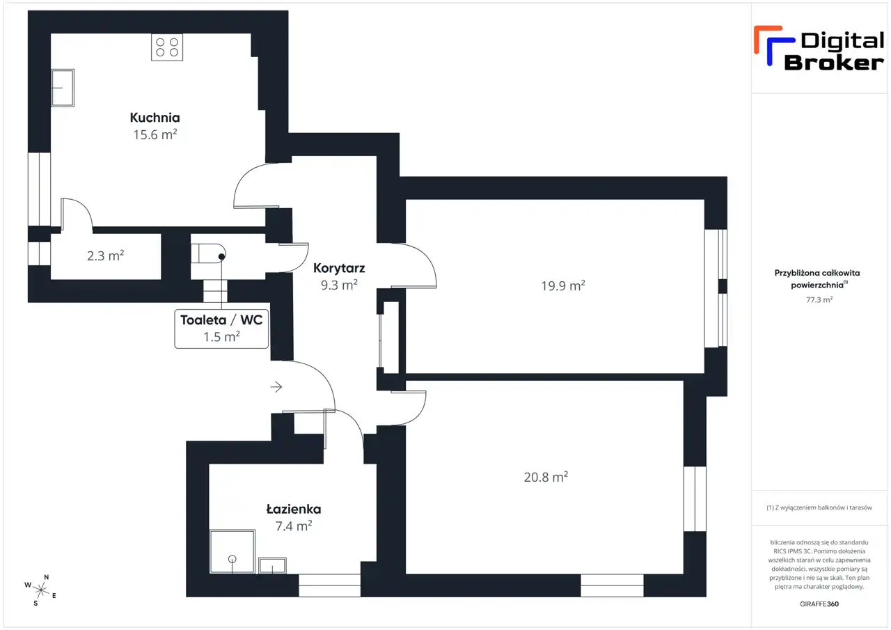 - Charakterystyka mieszkania 77.6 m2, 2 pokoje