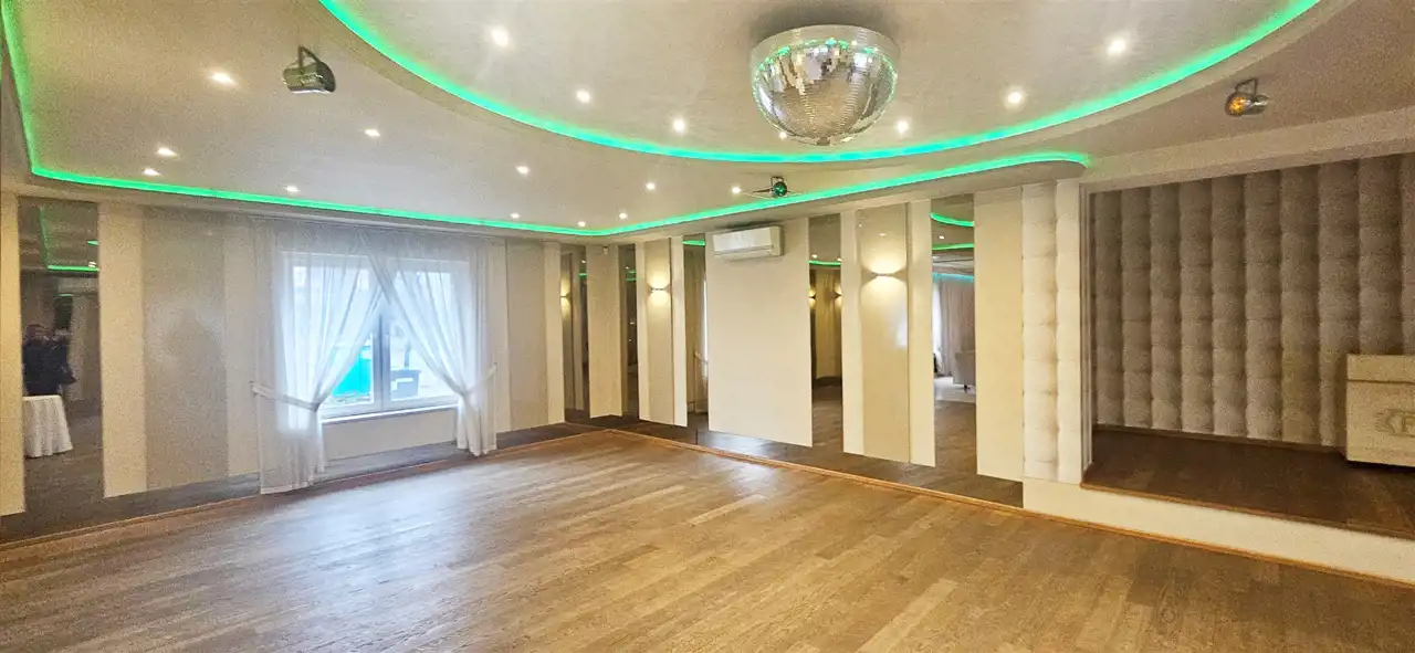 Sala bankietowa z parkietem tanecznym i barem, przeznaczona na organizację uroczystości dla maksymalnie 130 osób,