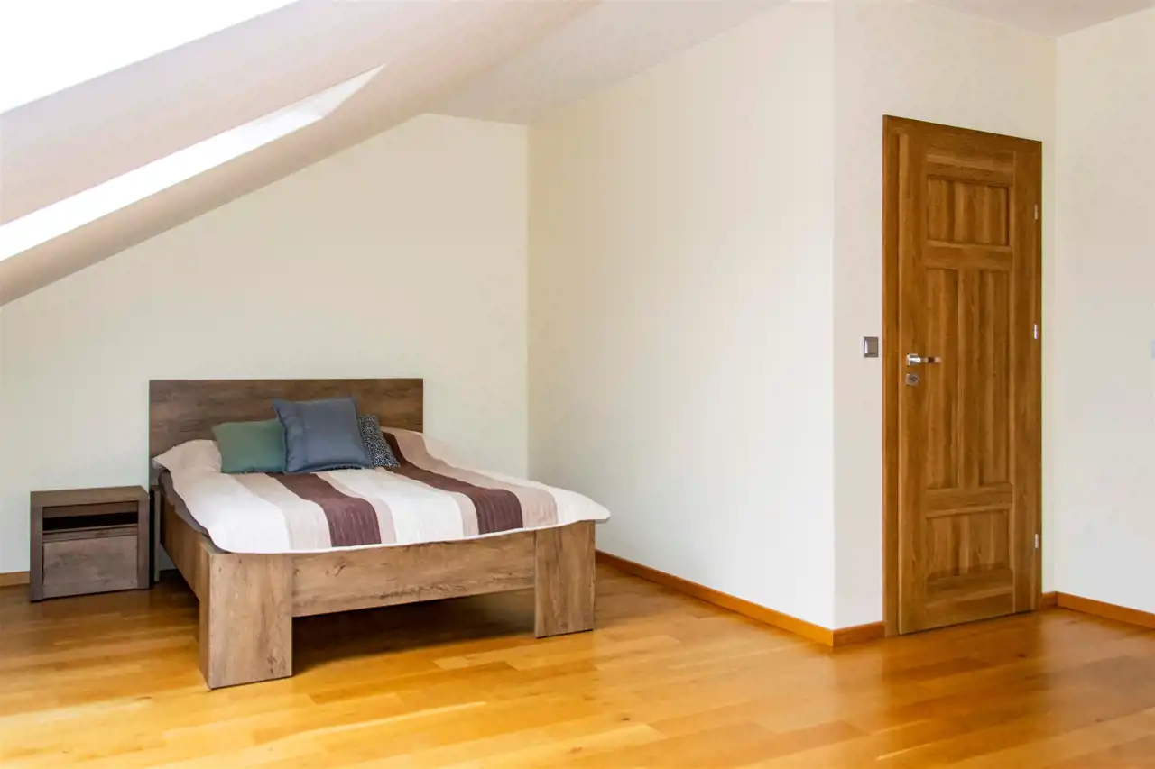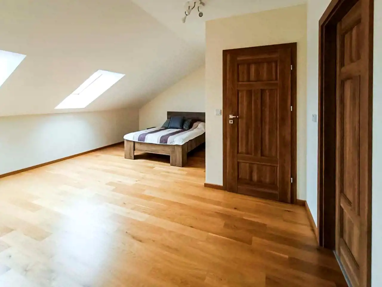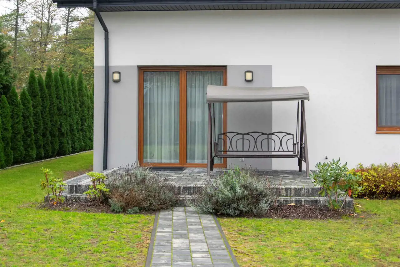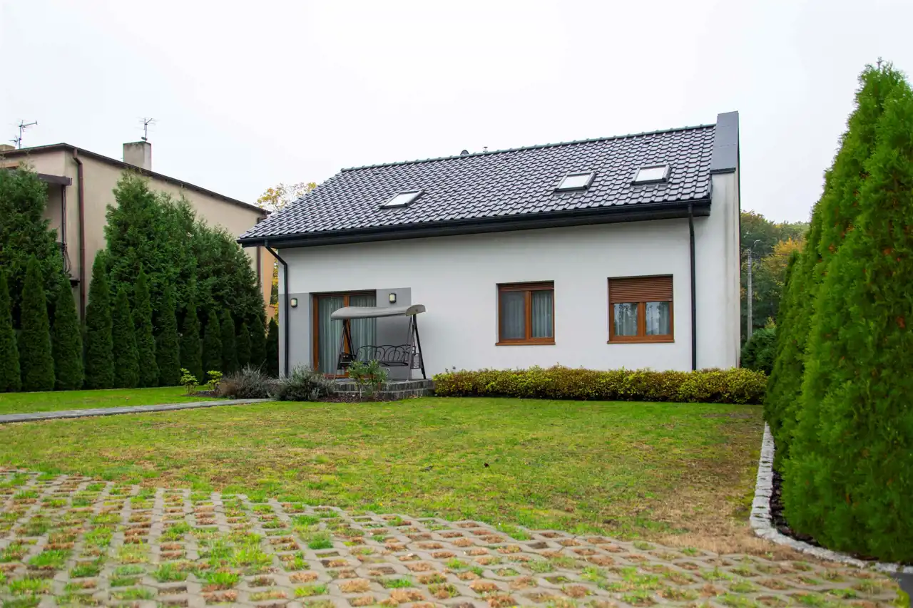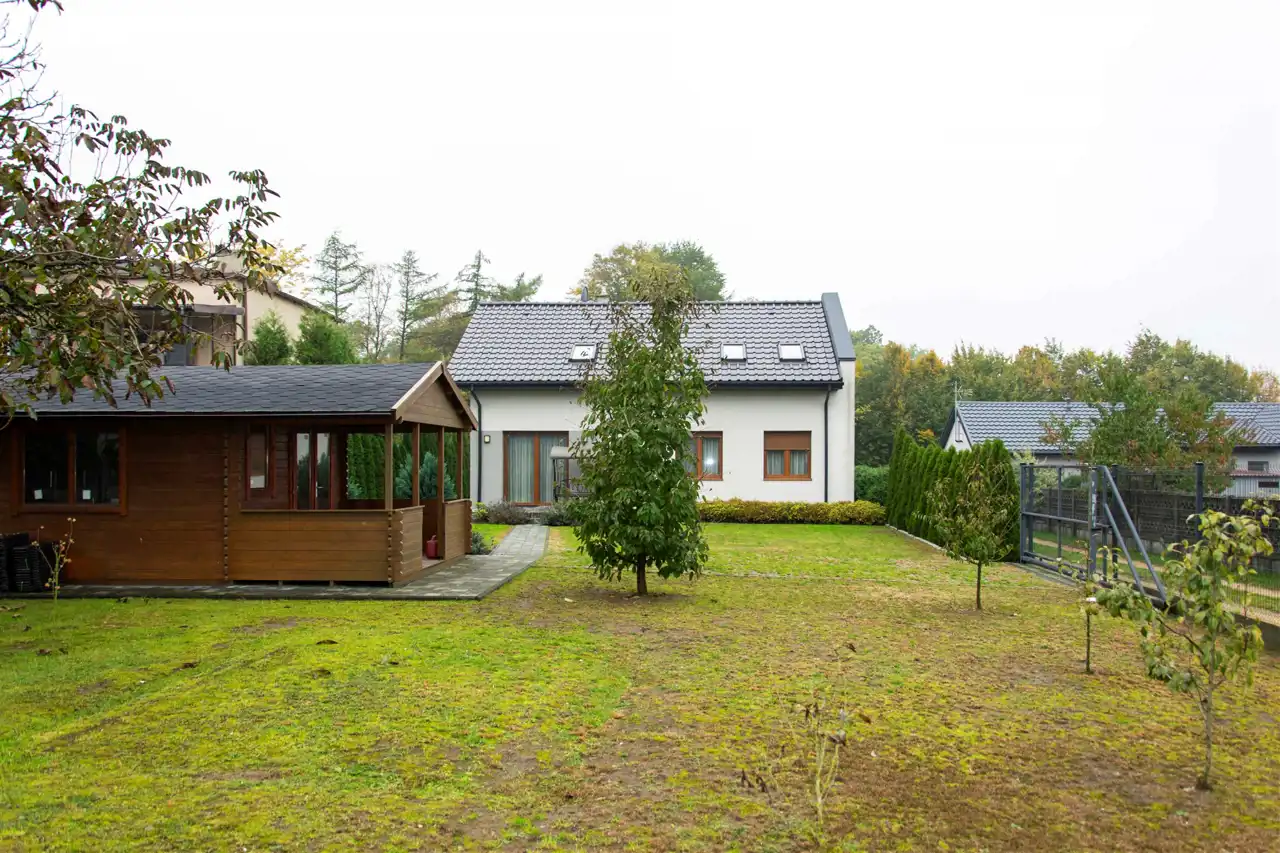 Na poddaszu znajdują się dwie sypialnie z garderobami oraz łazienka z WC. Na parterze znajdziemy kolejne dwie sypialnie, duży salon z wyjściem na tras oraz jadalnię połączoną z kuchnią. W domu jest miejsce na spiżarnie oraz wyjście do garażu. Niepodważalnym atutem nieruchomości jest domek gościnny z letnią kuchnią - to doskonałe miejsce na zabawę, relaks i grilla.