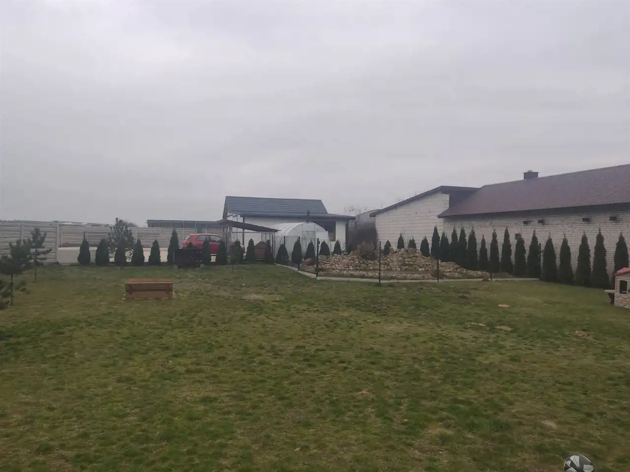 • Działka ogrodzona płotem betonowym, panelowym z bramą automatyczną.