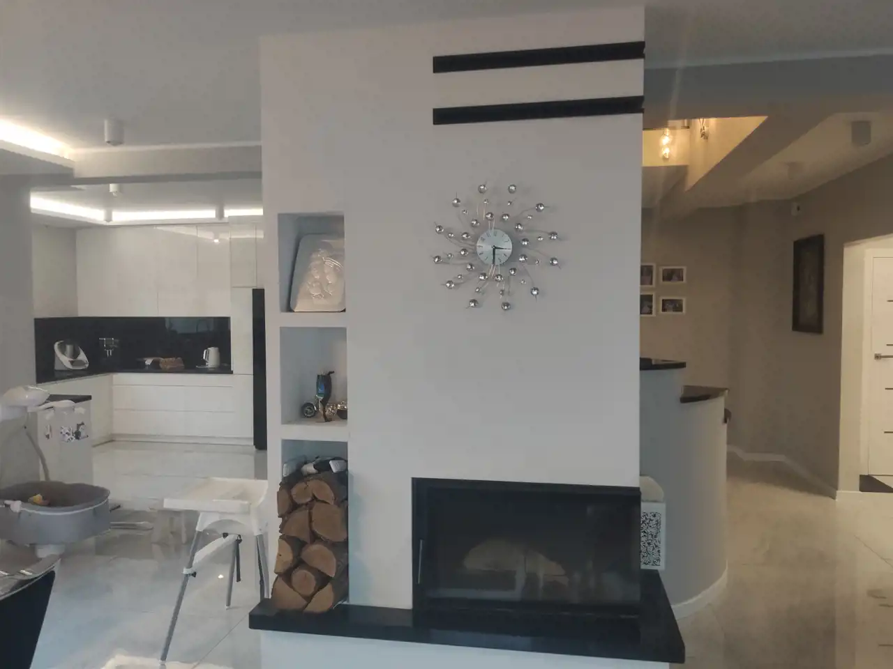 • Dom w pełni wyposażony: meble kuchenne na wymiar, garderoby, zabudowy w pralni i suszarni oraz pozostałe meble wykonywane na wymiar w cenie domu.