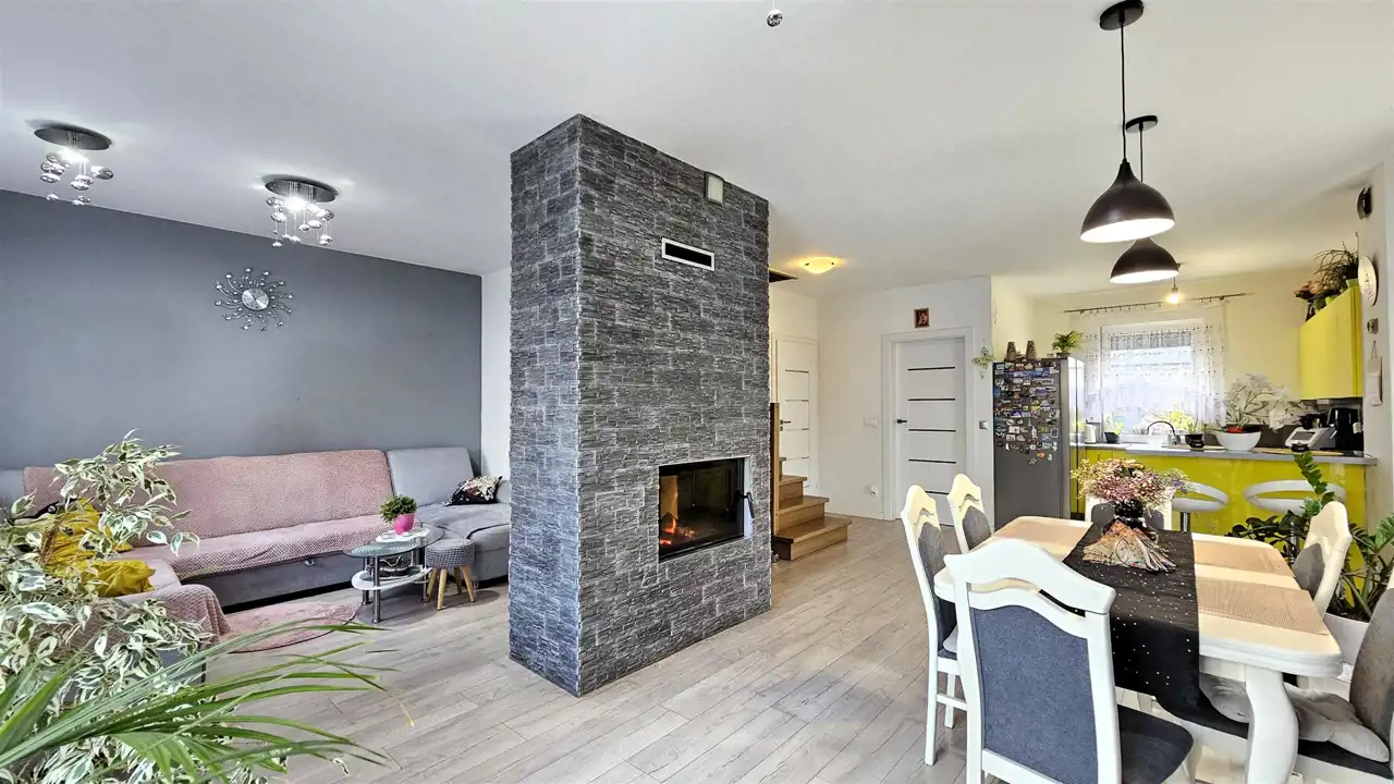 Mam Państwu do zaoferowania przestronny dom w zabudowie bliźniaczej z 2017r. o powierzchni użytkowej 108,3 m2 (dodatkowo poddasze o powierzchni całkowitej ok. 20 m2)