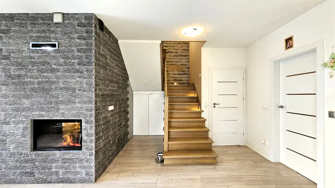 - Pokój dzienny z kominkiem: 18,4 m2